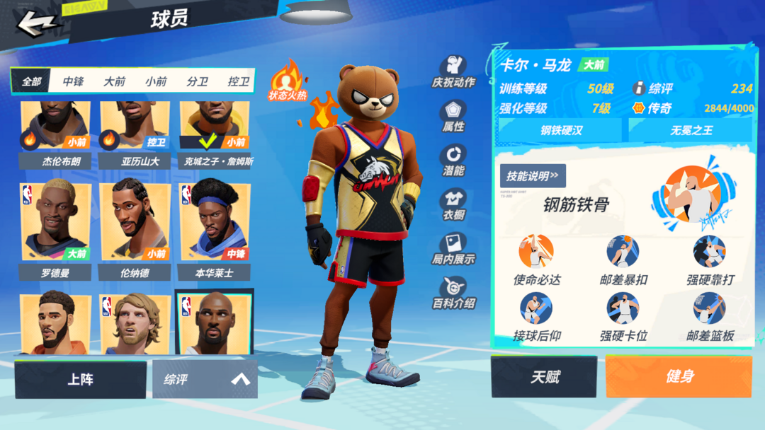 装备描述:熊头米宝头全套机甲跑车13满突 机甲全套,见龙头手2件套 熊头,醒狮头,米宝头,奇幻夜套,球魁套,篮板牛套,暮色婚礼套,铁拳套,马上来财套等各种服装加嫂专属 球员:7老詹、7克詹,7小卡,7塔图姆,7诺维斯基,7布朗,7罗斯,7罗德曼,7大本,7亚历山大,7韦德,7马龙,7韩旭,5浓眉,紫卡能上场的全满突 超级联赛133.5评分 阵容调调吃点低保不成问题
