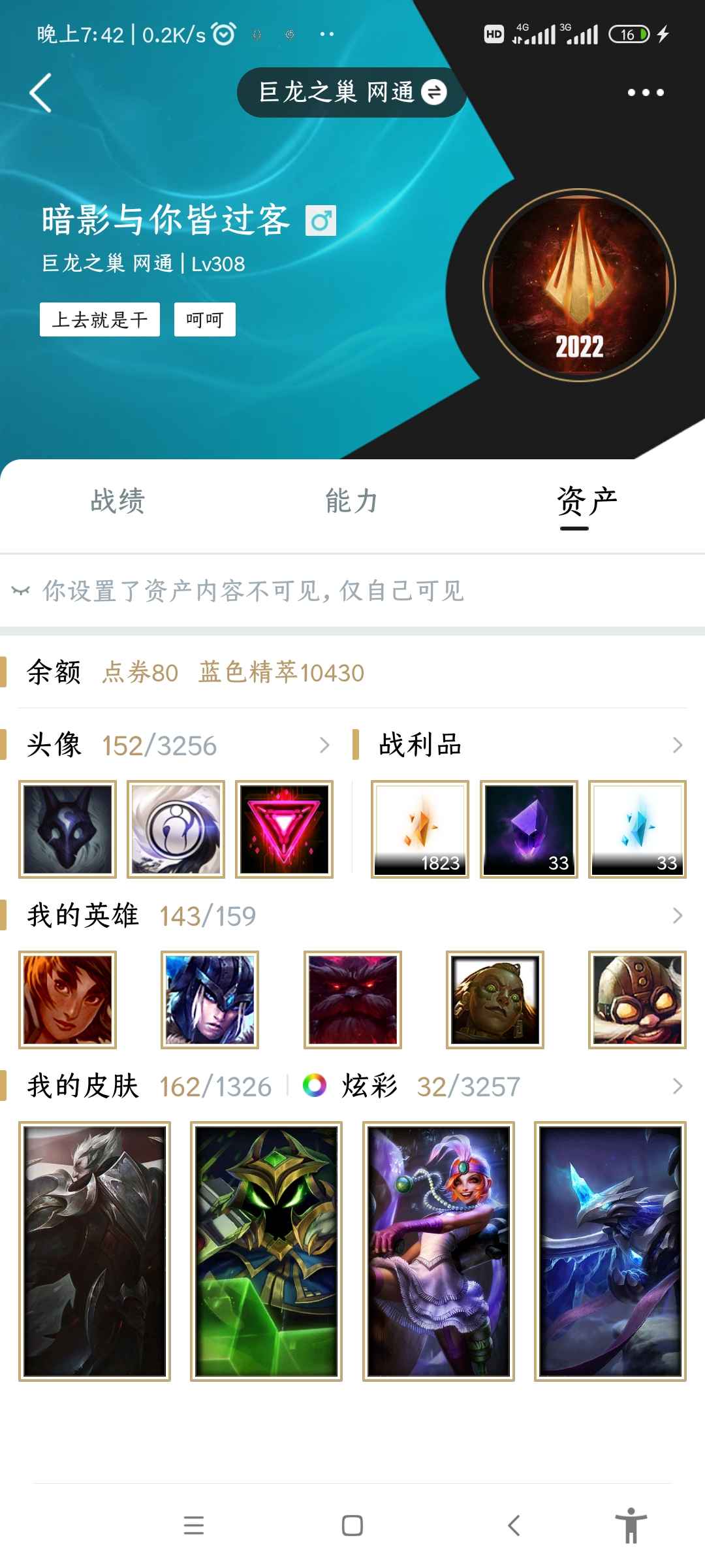 装备描述:拥有皮肤皆是手感好的玩了四五年的账号 希望各位老板好好对待 差十六个英雄全英雄
