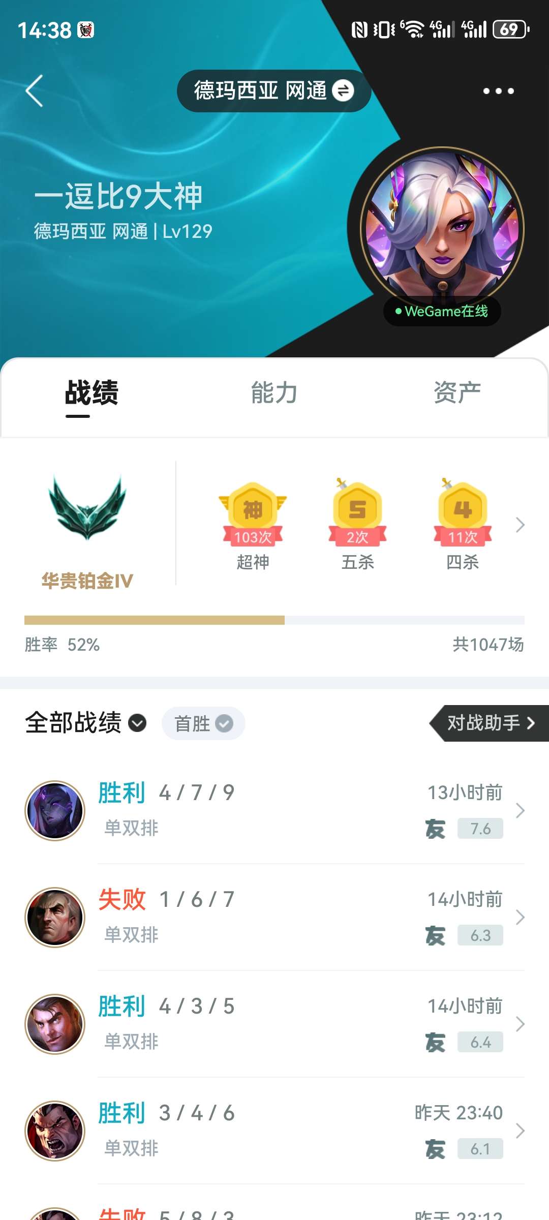 段位:247级 荣耀黄金IV