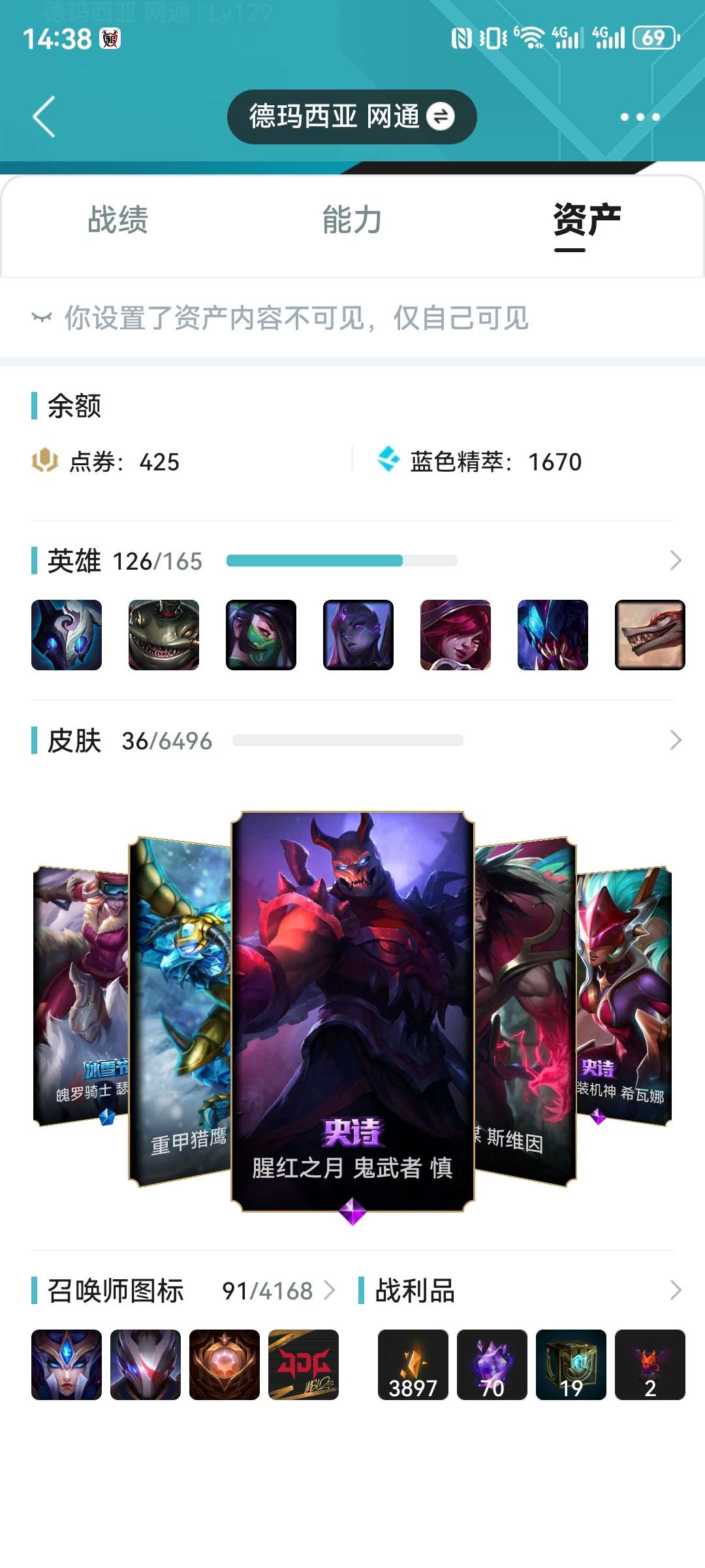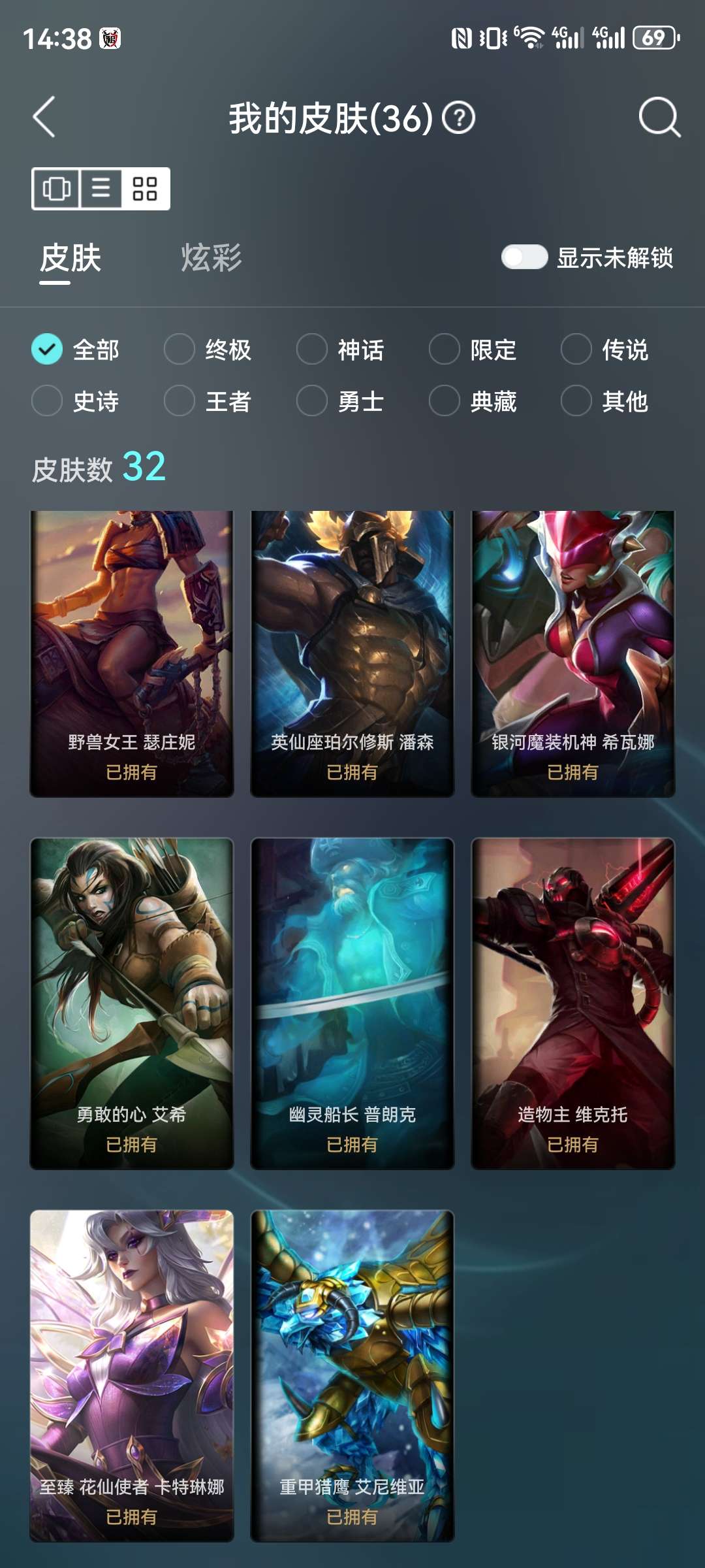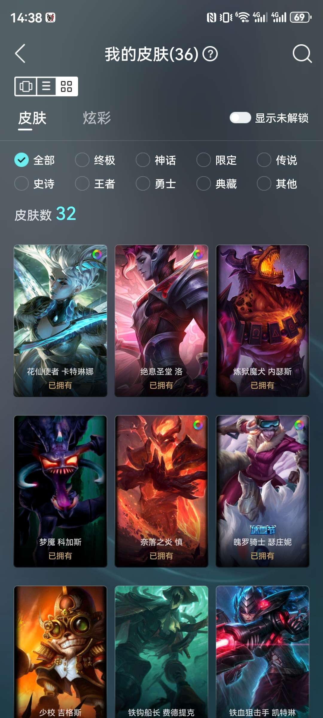 黄金白菜号,卡特至臻。64皮肤,全英雄。可排位