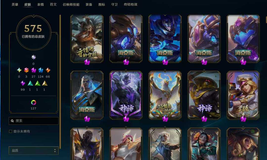 575原皮⚡27神话⚡云顶双神话小小+神话棋盘⚡至臻卡莎斗魂莎弥拉龙瞎龙刀玉剑双刀双龙亚索天煞劫