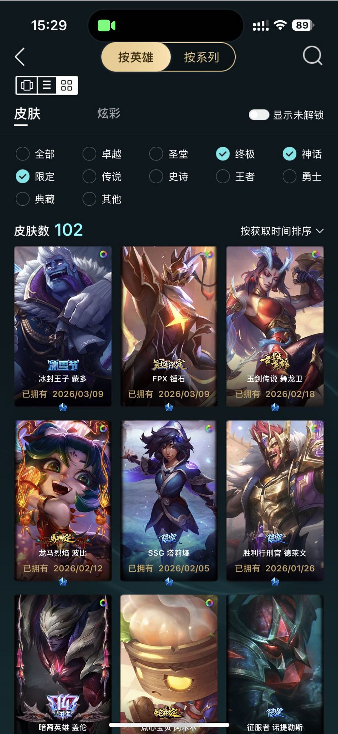 500皮肤龙瞎.勇敢的心.海克斯诺手安妮.大天使.未来战士ez.年限皮肤.战队皮肤