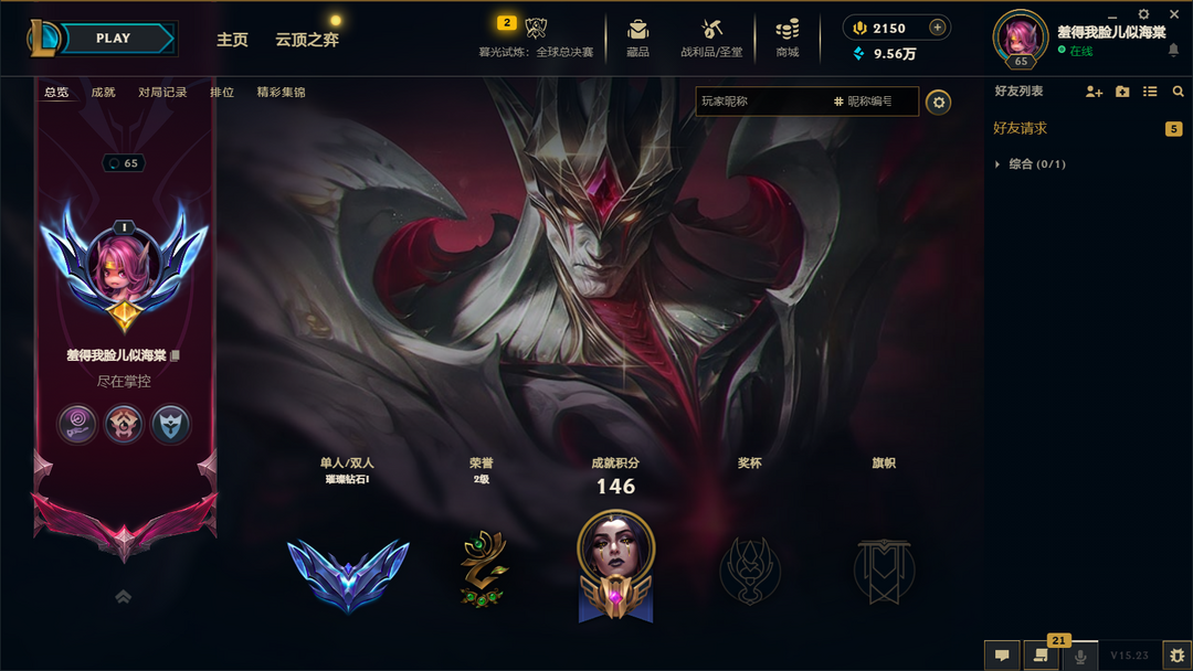 ★【峡谷之巅】钻石1可排位★至臻暗裔皇子★SSW男刀★全英雄爽完