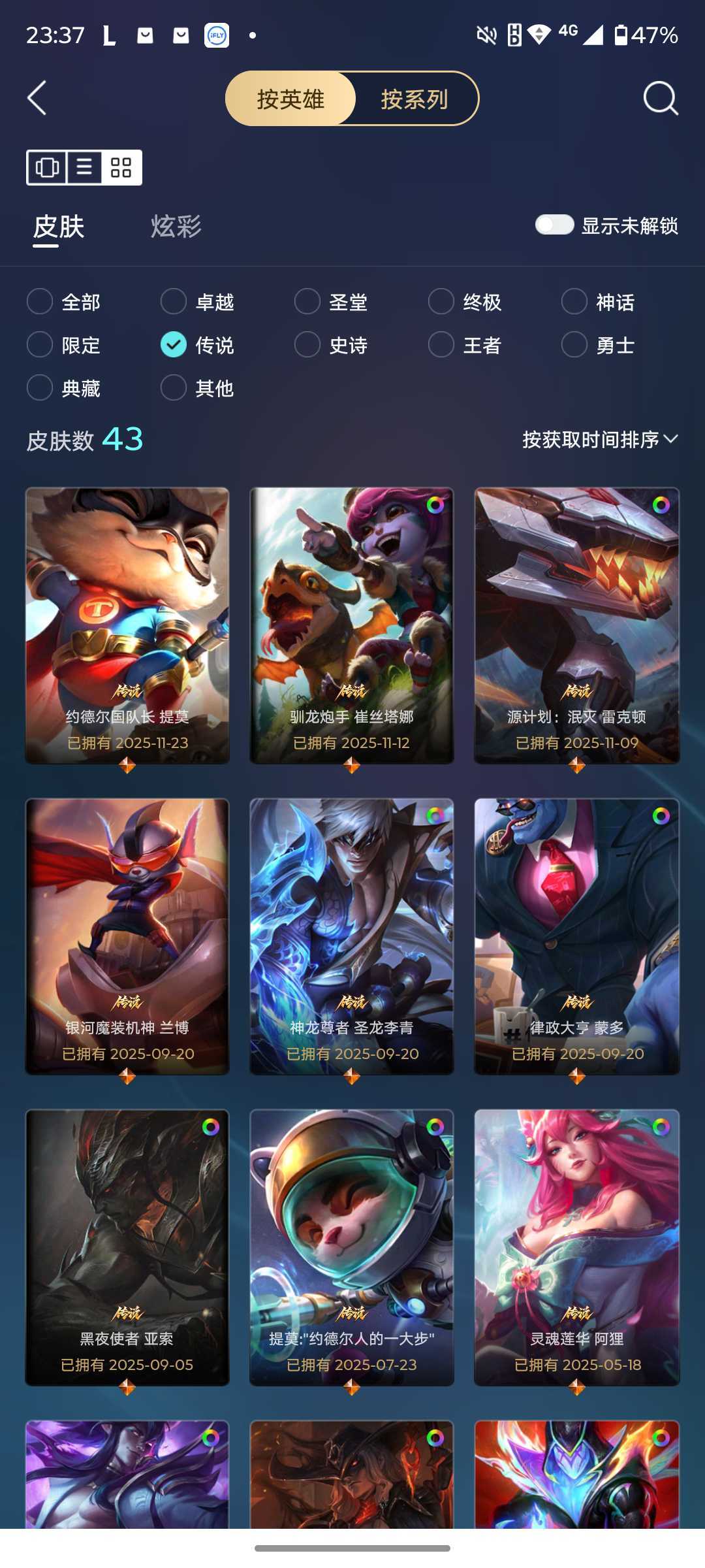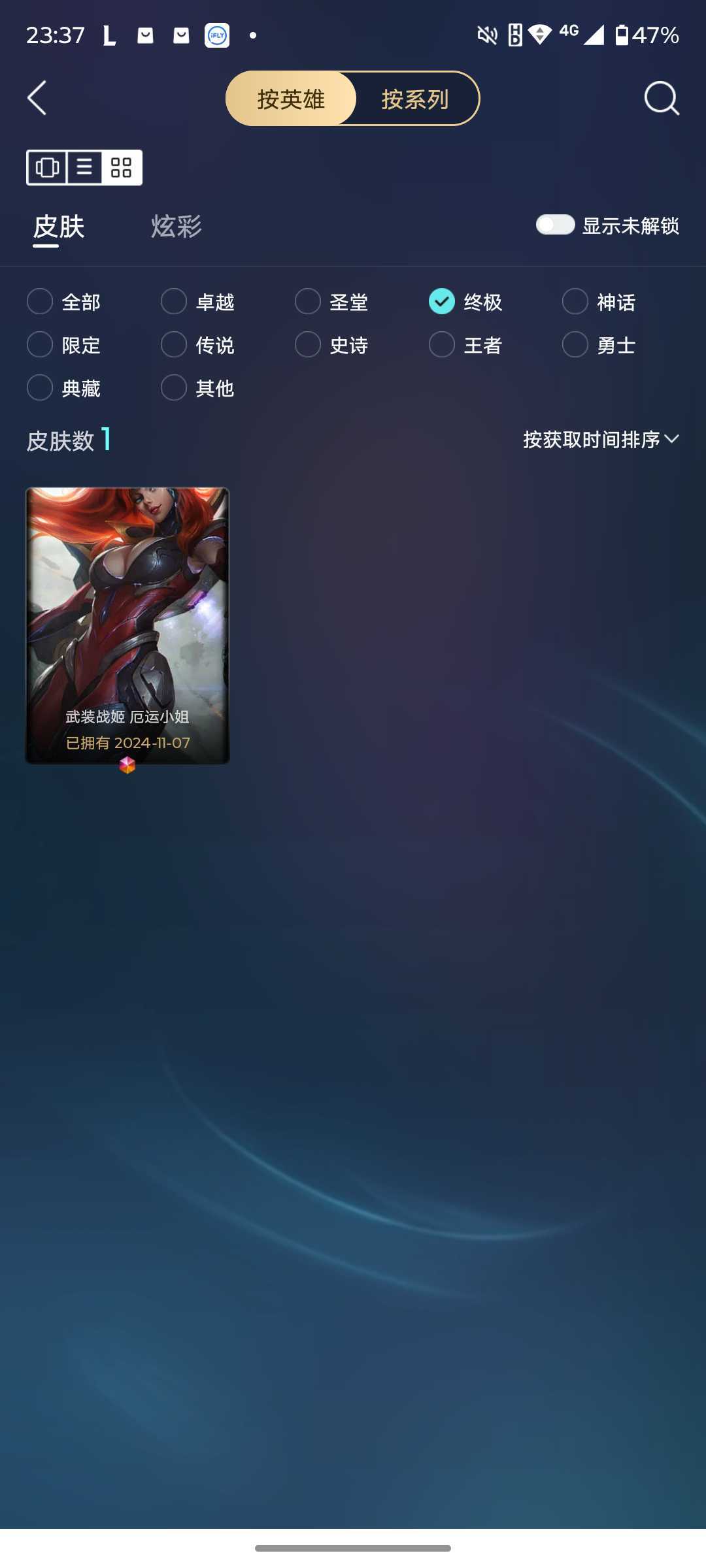 324皮/终极1❤️神话18❤️限定47❤️传说43❤️史诗35