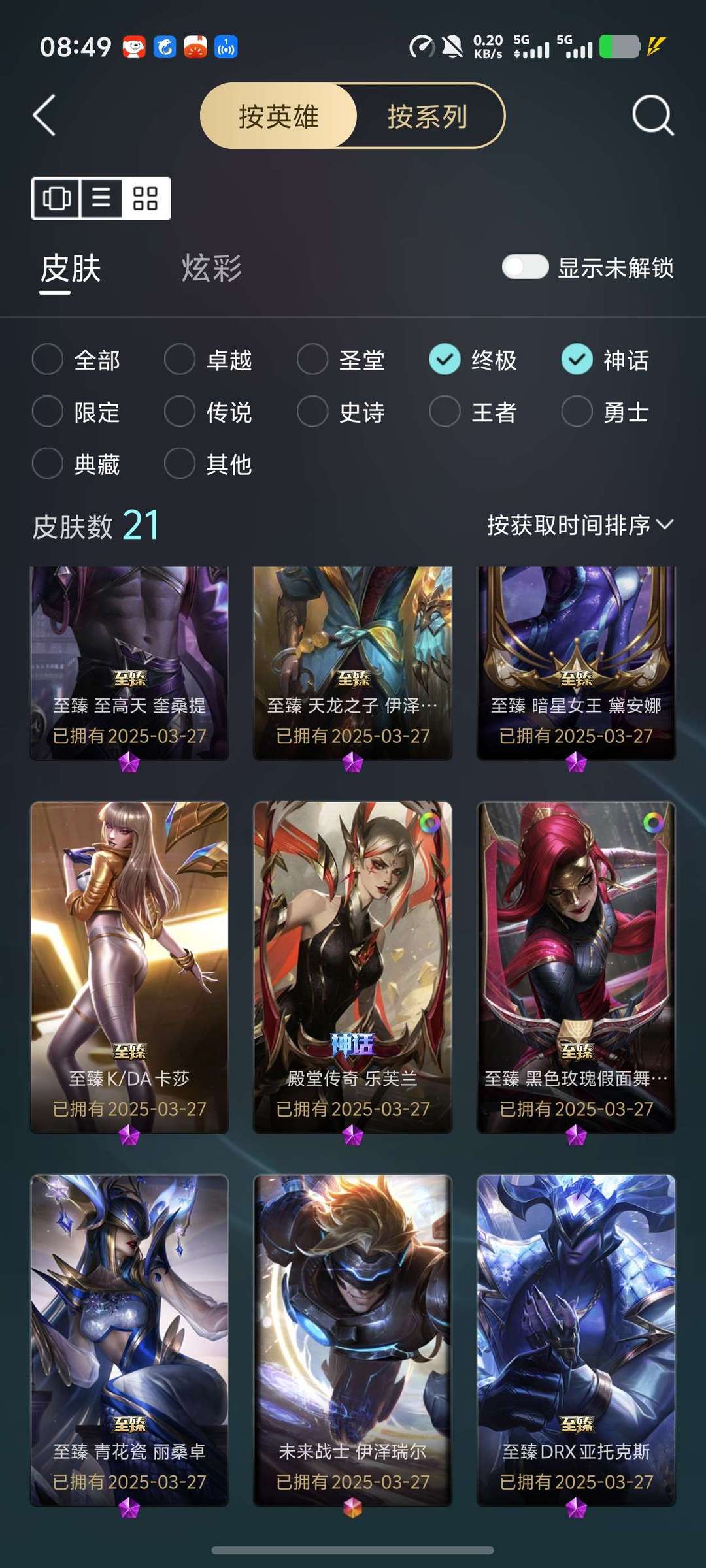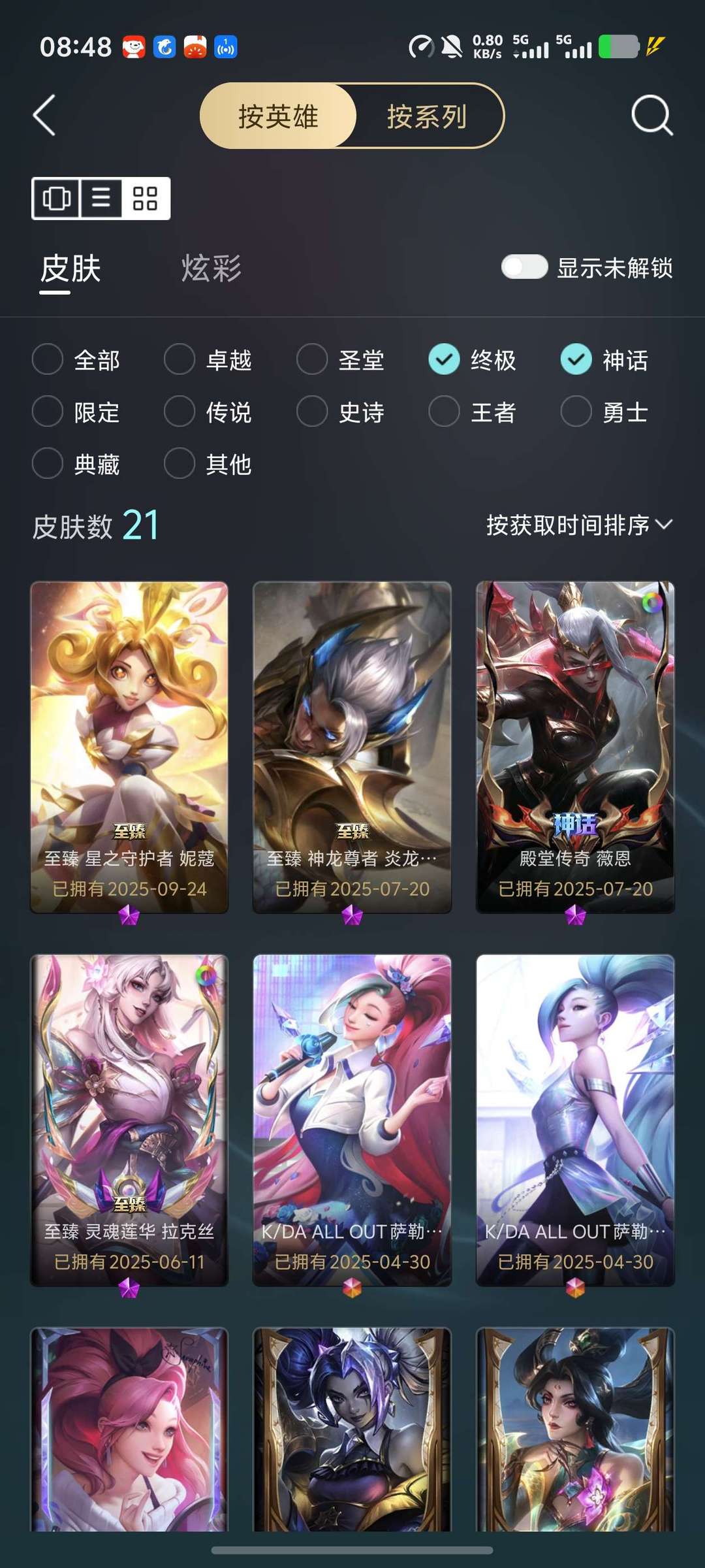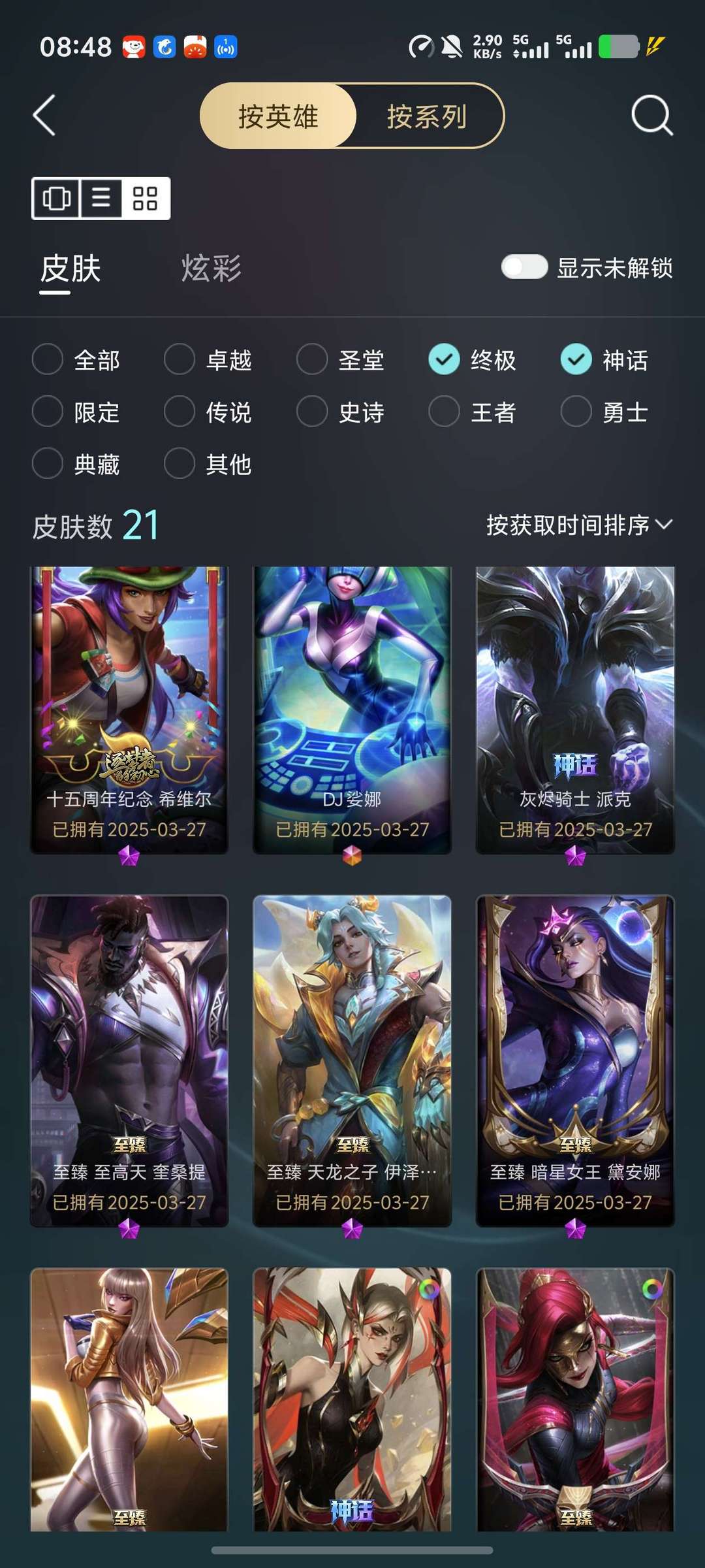 全英雄197皮肤 皮肤质量高 5终极 16神话 24限定 29传说 可排位