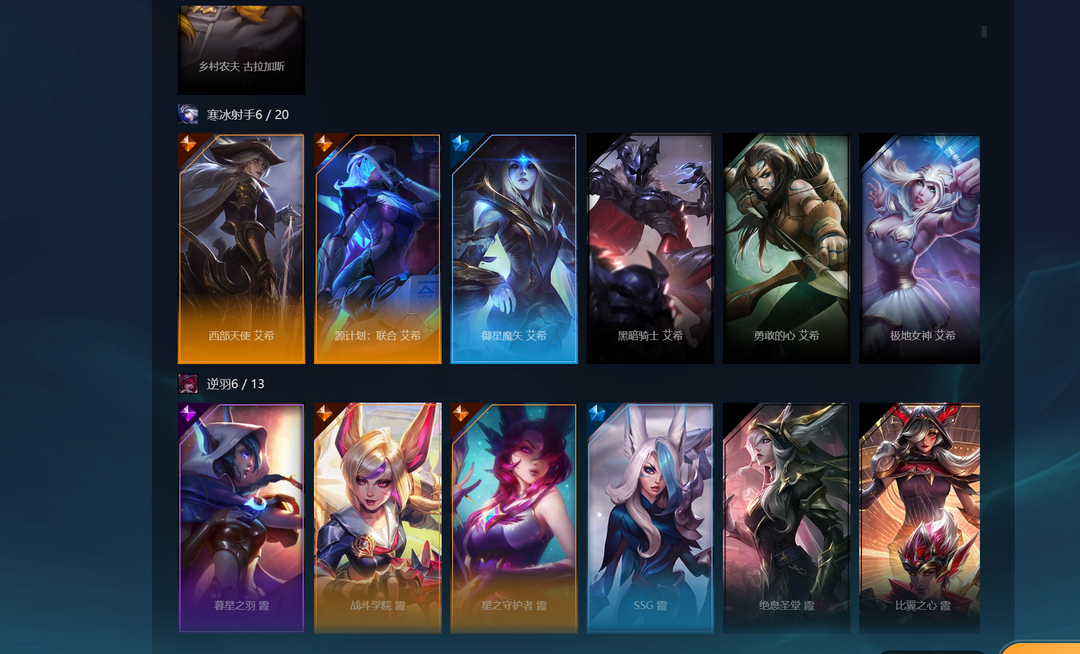 装备描述:传说 舞龙卫;冰霜亚龙 希瓦娜;黯黑魔龙 希瓦娜;骸骨之爪 希瓦娜;枯萎之壤 泽拉斯;符文生物 泽拉斯;暗星女王 拉克丝;星际迷航 拉克丝;荣誉使者 慎;未来战士 慎;胜利巨口 克格莫;深海怪鱼 克格莫;毛毛虫 克格莫;幻灵战斗兔 锐雯;血色精锐 锐雯;血色精锐 泰隆;创世之神 玛尔扎哈;战场BOSS 玛尔扎哈;至高君王 玛尔扎哈;魔灵 玛尔扎哈;幻灵狮心 蕾欧娜;泳池派对 蕾欧娜;暗裔英雄 盖伦;海上霸主 盖伦;钢铁军团 盖伦;战神阿瑞斯 盖伦;腥红之月 凯南;刺客信条 凯南;医学博士 凯南;空手道 凯南;银色闪电 凯南;星之守护者 阿卡丽;铁血女忍 阿卡丽;银色之牙 阿卡丽;实习护士 阿卡丽;五杀摇滚吉他手 莫德凯撒;未来战士 伊泽瑞尔;冰川勇者 伊泽瑞尔;丧尸杀手 潘森;英仙座珀尔修斯 潘森;万人敌 潘森;太空律动 “电音酒