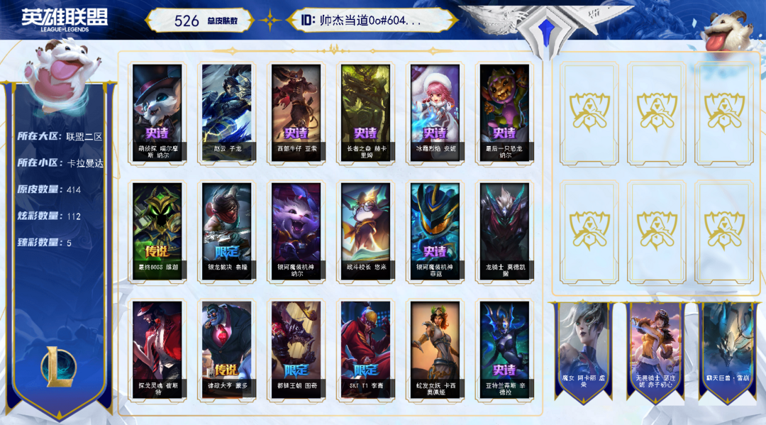 【联盟二区】★可排位★526总皮★414原皮★灰烬使者塞拉斯★龙嘴★赵云★SKT盲僧★