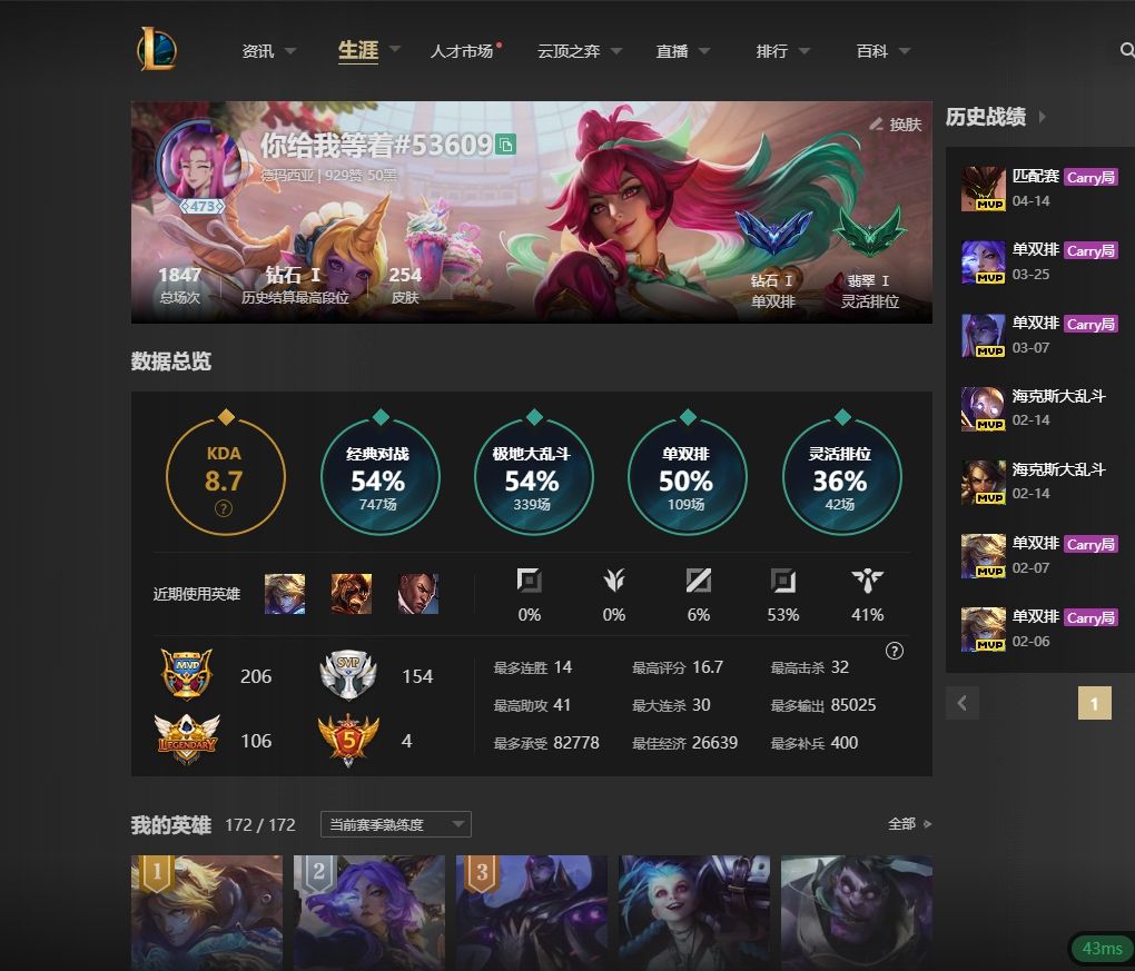 游戏区服:英雄联盟-联盟五区-德玛西亚