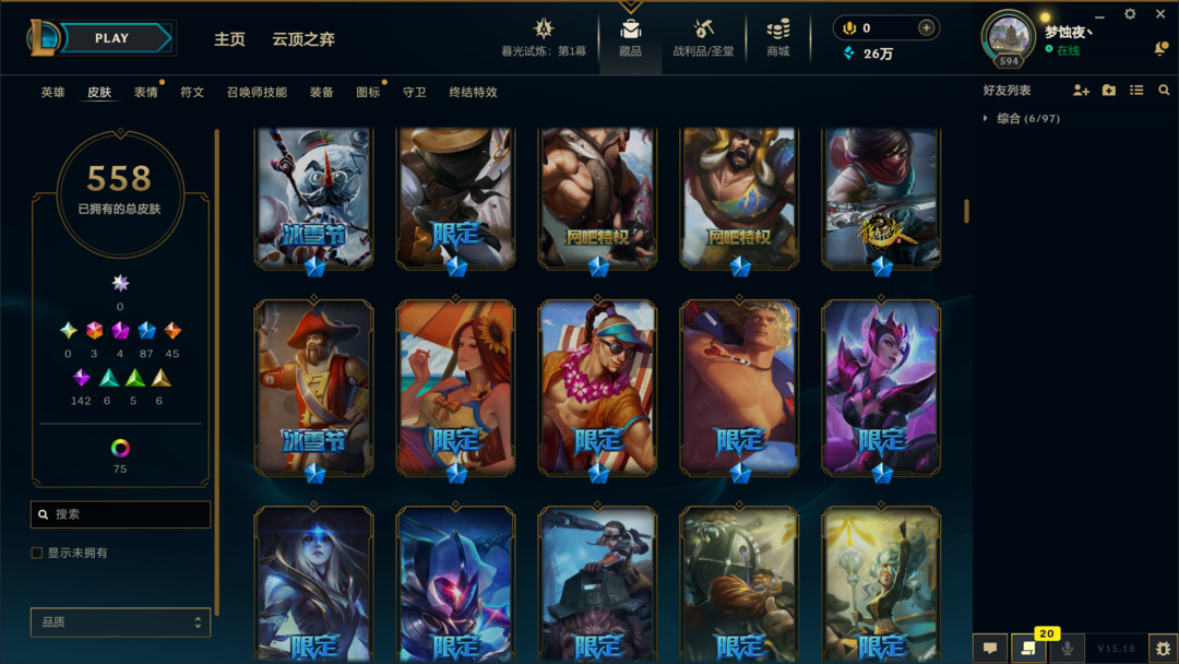 可排位600皮肤〓10至臻海克斯〓斩星龙刀战熊养蜂人〓神凰行者