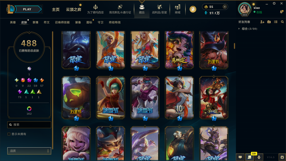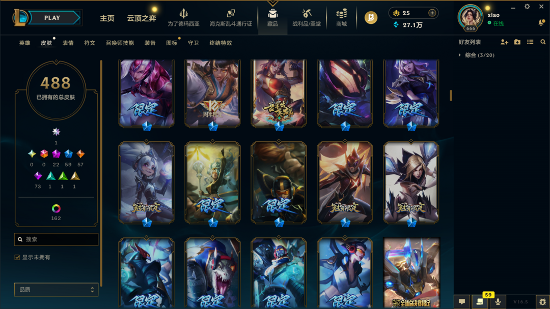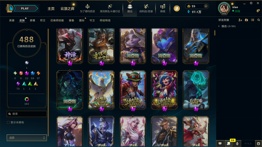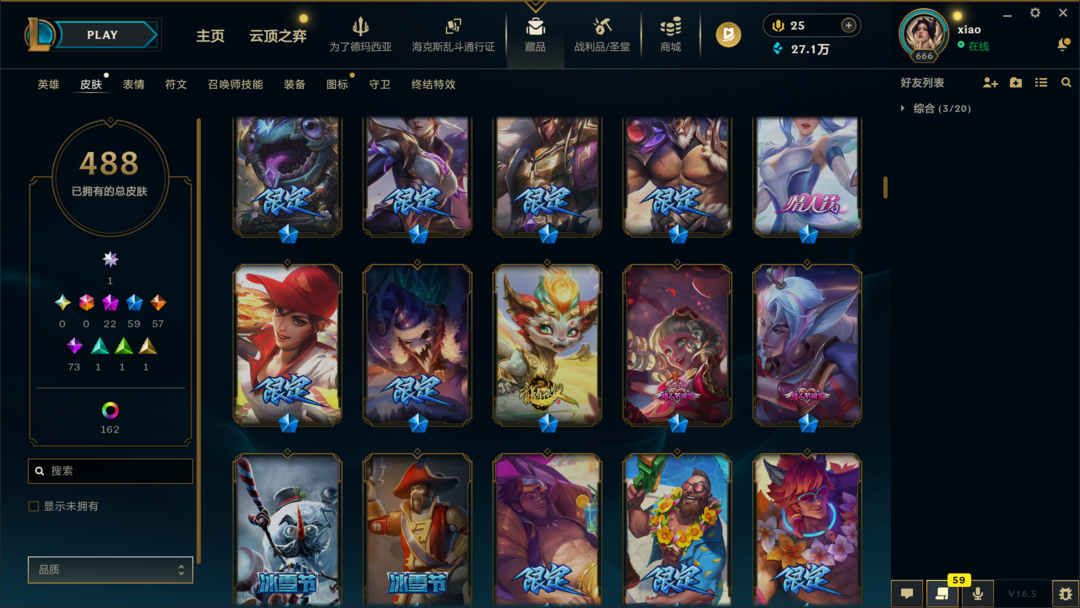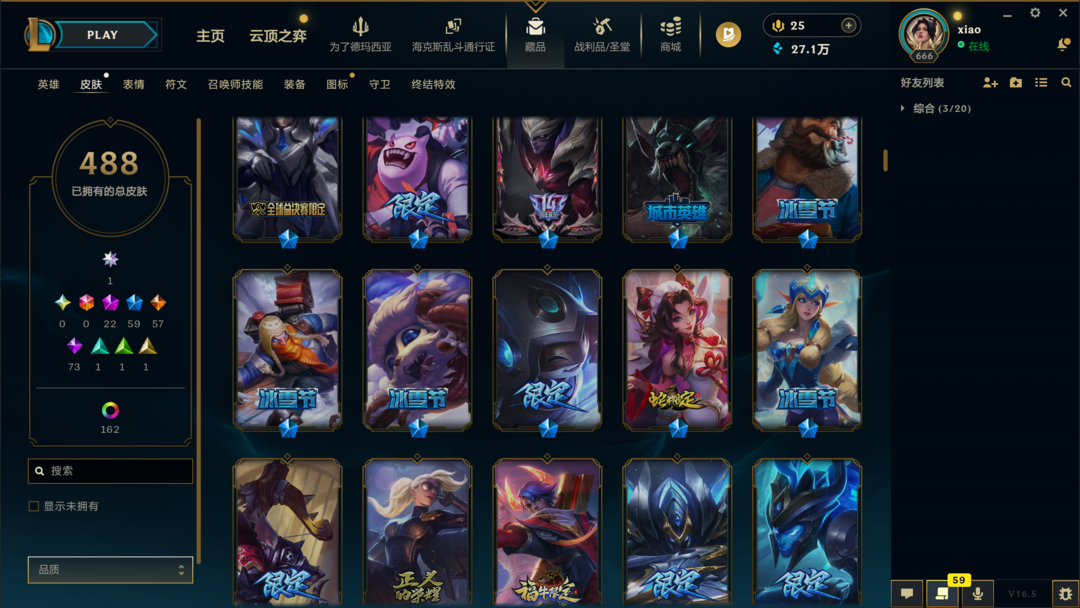 可排位500皮肤〓30至臻海克斯〓摄魂神王天煞劫〓殿堂卡莎〓冰雪节限定