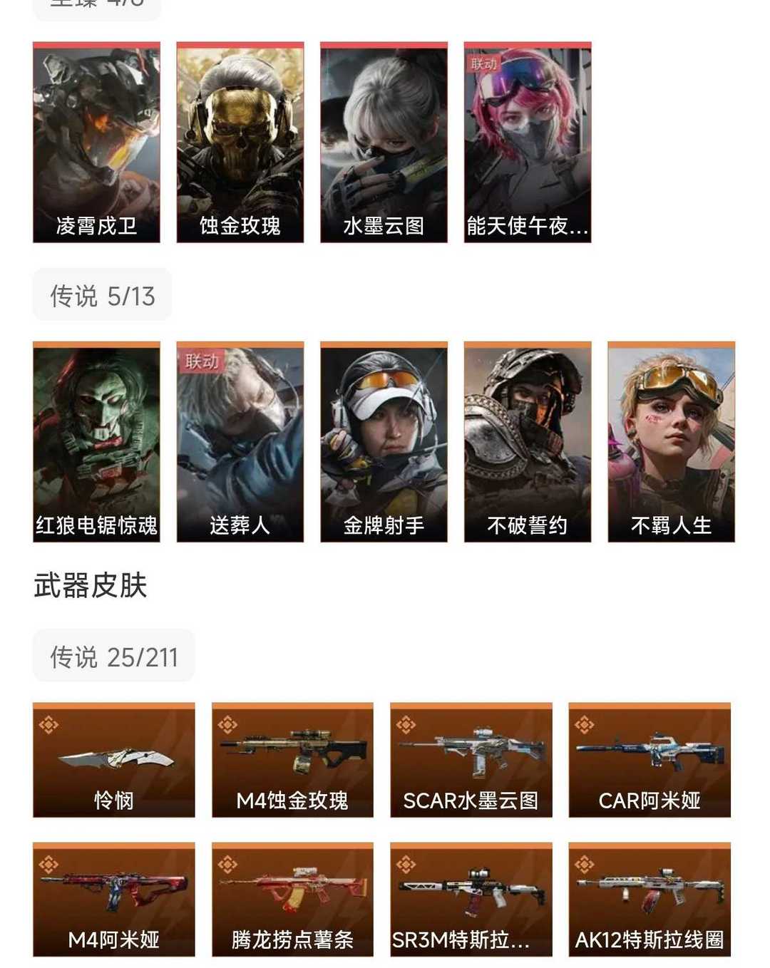 皮肤号 怜悯4红凌霄戍卫,蚀金玫瑰,水墨云图,女医,24款传说枪皮