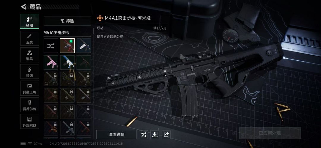 皮肤号 猛攻开黑/黑鹰/典藏外观1/武器外观数1仓库价值10.5M 干员数名 M4A1突击步枪-阿米娅 工