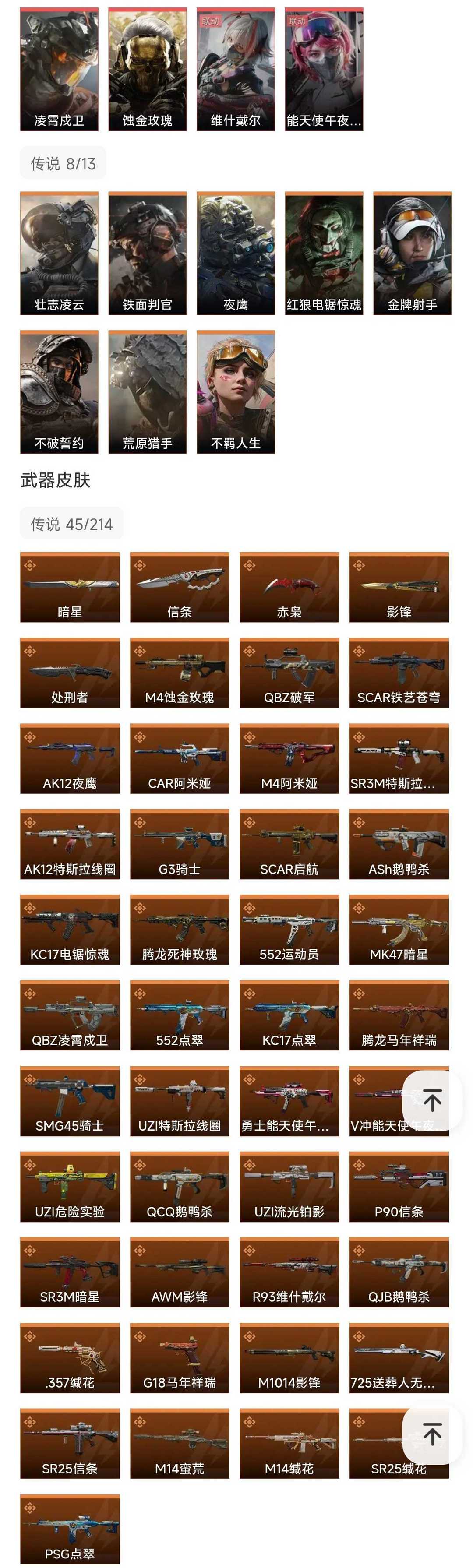 皮肤号 4红5刀暗星信条蝴蝶刀赤枭,凌霄茂卫,蚀金玫瑰维什戴尔,女医,45款传说枪皮肤