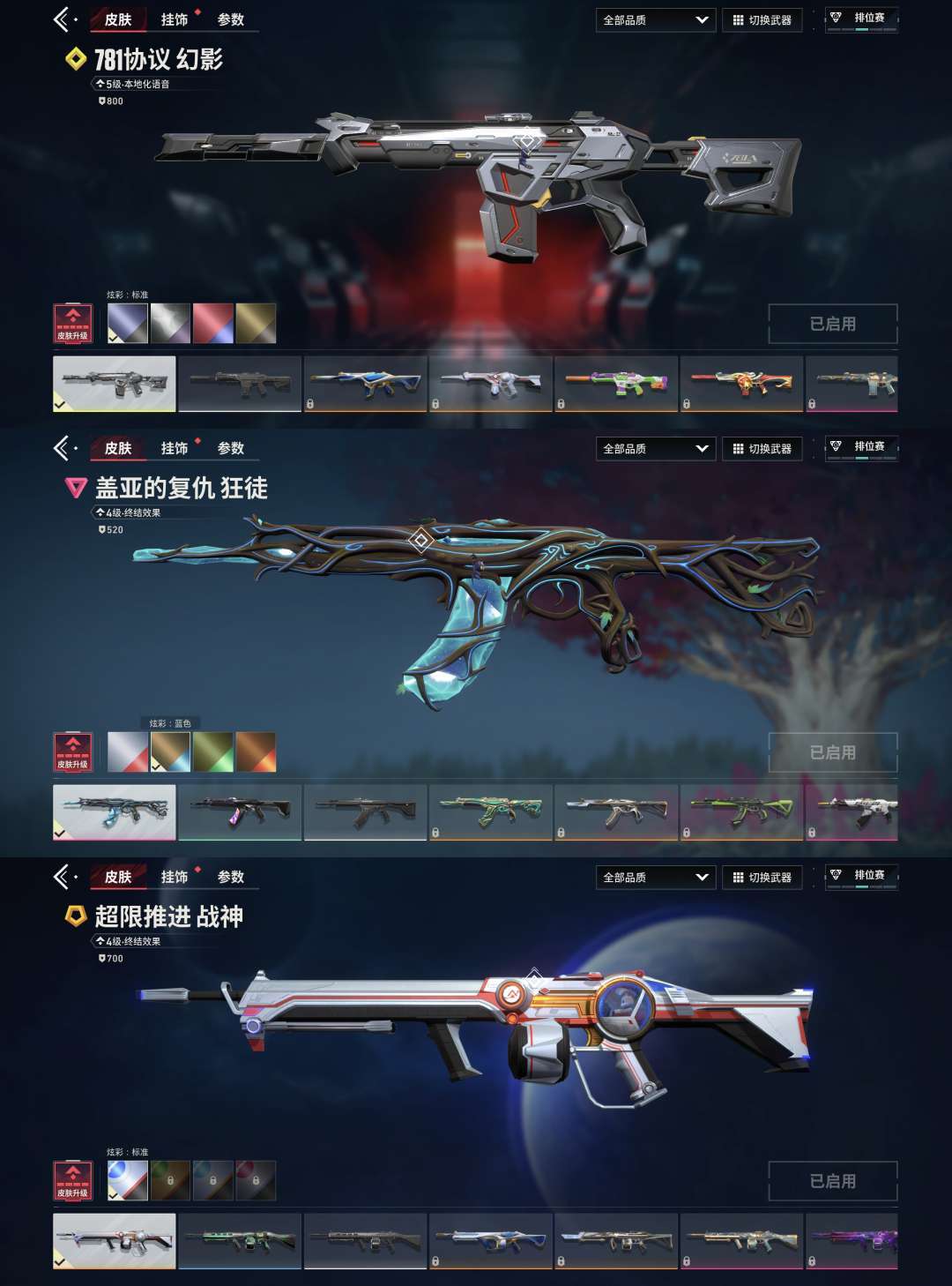 四色781协议幻影 四色盖亚复仇狂徒 满级超限推进战神 满英雄源晶战刀 激流先锋蜂刺