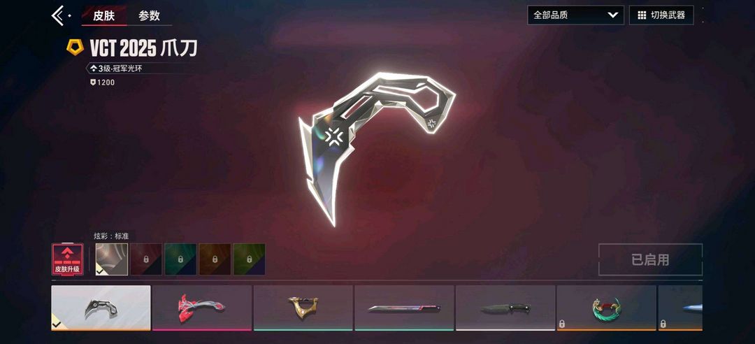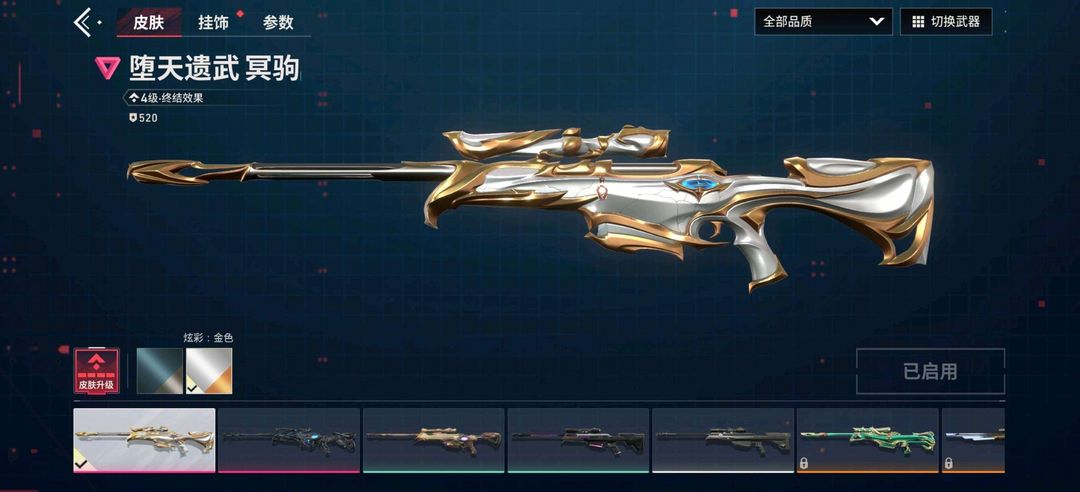 装备描述:幻影-醒狮,狂徒-盖亚的复仇,戍卫-盖亚的复仇,冥驹-堕天遗武,冥驹-无垠星环,飞将-盖亚的复仇,鬼魅-盖亚的复仇,标配-堕天遗武,骇灵-堕天遗武,狂徒-源晶工程,獠犬-创世纪,獠犬-源晶工程,冥驹-创世纪,冥驹-源晶工程,正义-源晶工程,鬼魅-异彩晶棱,短炮-创世纪,判官-红鳞松叶,雄鹿-创世纪,幻影-航空材料,戍卫-航空材料,戍卫-本色混搭,飞将-质感轻奢,正义-激流先锋,鬼魅-金鸾之翼,鬼魅-本色混搭,标配-金鸾之翼,短炮-质感轻奢,狂怒-航空材料,狂怒-质感轻奢,骇灵-航空材料,判官-金鸾之翼,判官-本色混搭,雄鹿-质感轻奢,战神-金鸾之翼,战神-本色混搭;【热门卡面】:终章休息时间幽影卡面,火线卡面,KO对炼狱卡面,堆雪人卡面,势不可挡蝰蛇卡面,创世纪卡面,贤者之泪卡面,裂土之疆卡面,尚勃勒工牌卡面,金鸾之翼卡面,万圣夜卡面,休息时间幽影卡面,科迪亚钢铁卡面,VCT2025美洲联赛卡面,VCT2025CN联赛卡面,VCT2025EMEA联赛卡面,VCT2025太平洋联赛卡面,无畏开拓者卡面,盖亚的复仇卡面;