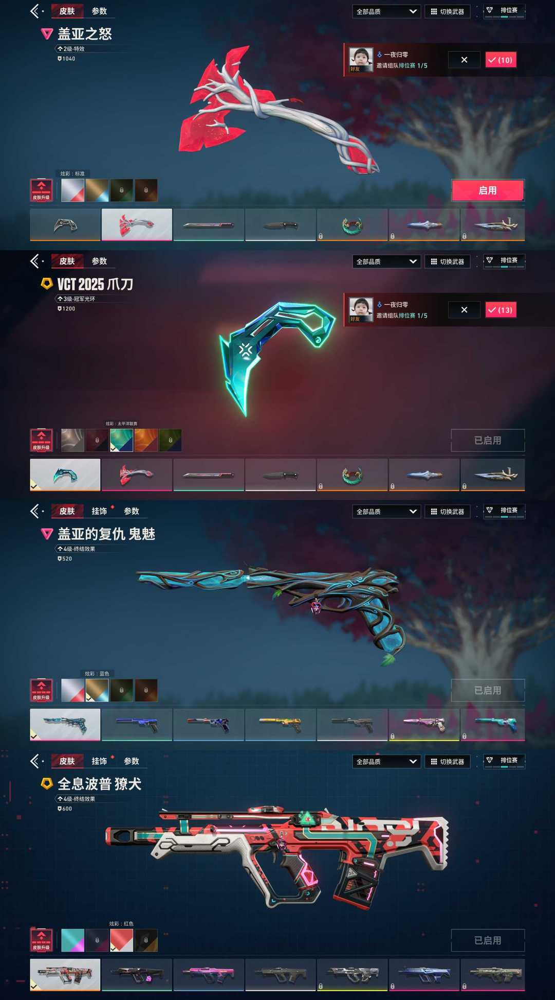 (特惠日租)绝版VCT爪刀❤盖亚的复仇套装❤️怒海惊澜幻影❤️醒狮幻影❤️离子幻影❤️全系波普獠犬