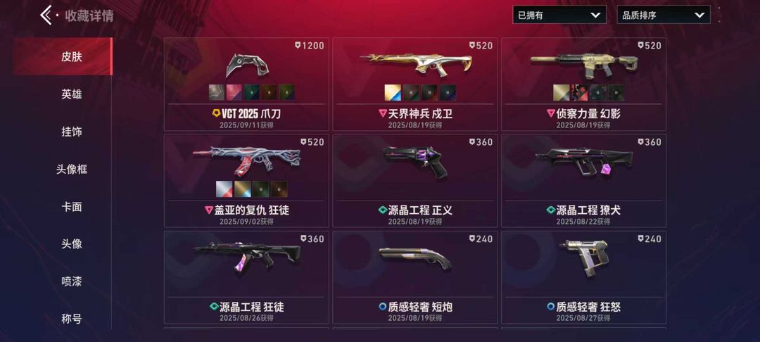 观察期VCT爪刀 天界神兵 戍卫 侦察力量 幻影 盖亚的复仇 狂徒 都满阶 19级收藏家