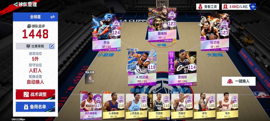 角色名:21号 乔治+浓眉+6詹+杜兰特 b199