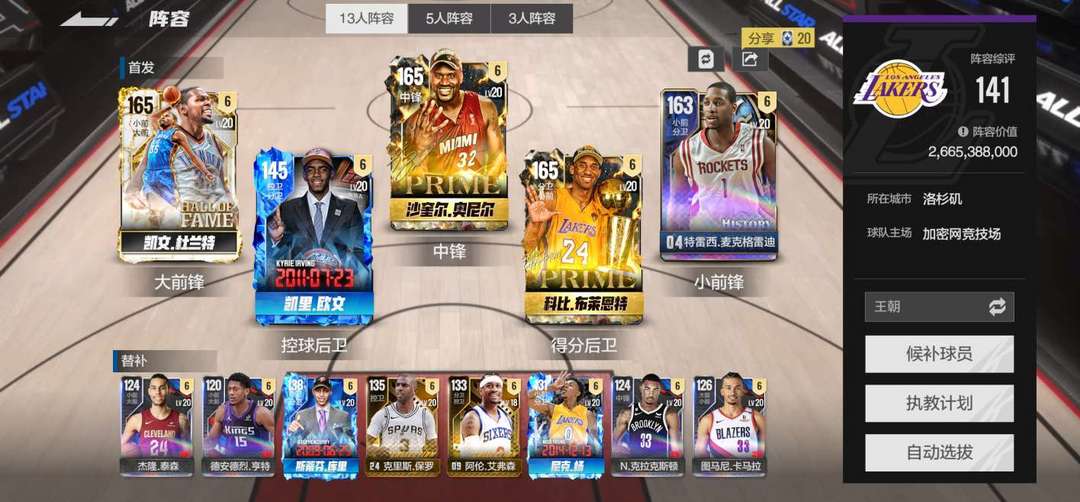 今日信誉分不足,双时刻杜兰特+奥尼尔,小时刻科比,满突麦迪,都是最强球员,随便爽。