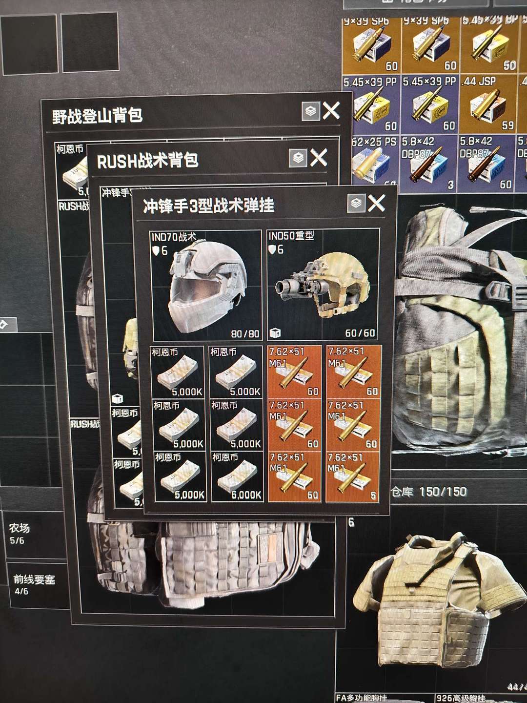 2亿500w现金,3人物红皮,2把刀皮,黄金h4,仓库有一个热成像,4个战神头