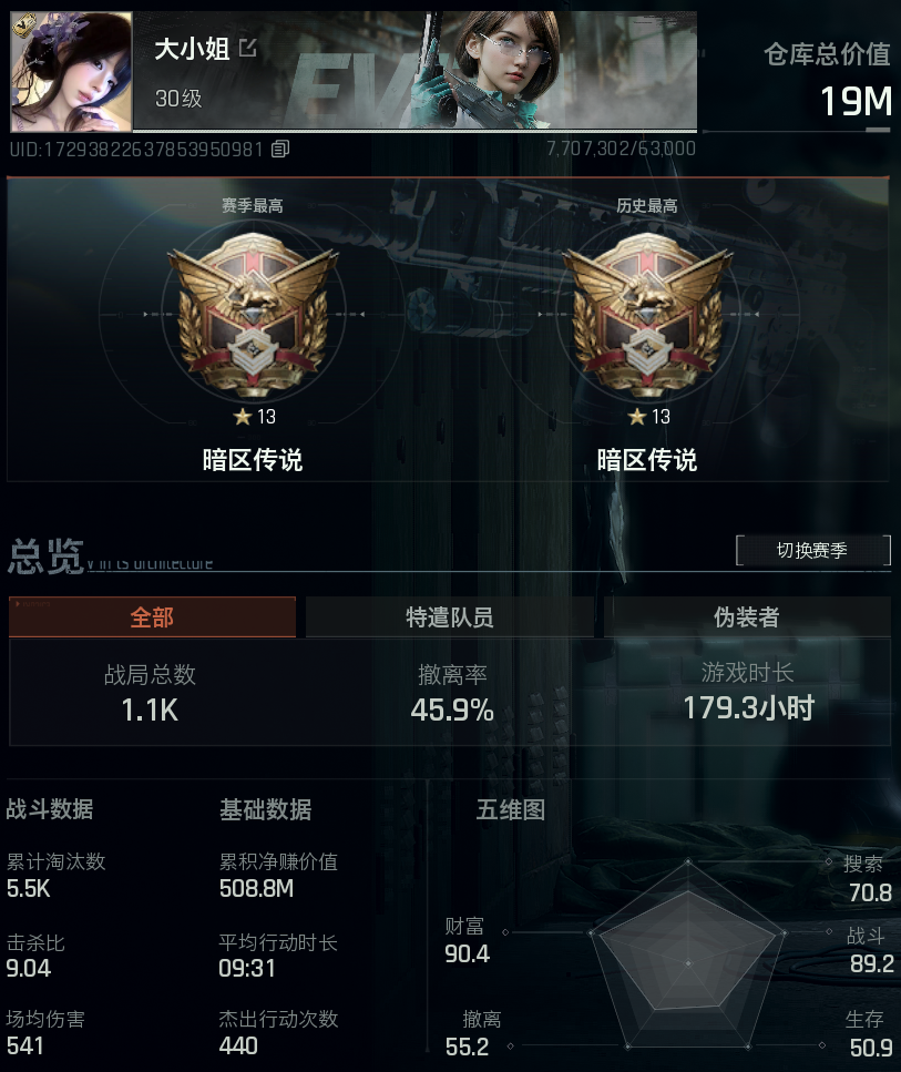【科恩币:1521W】☀艾薇塔+蝴蝶刀☀⭐3*3⭐19M⭐租前看描述⭐超多枪皮⭐机场猛攻