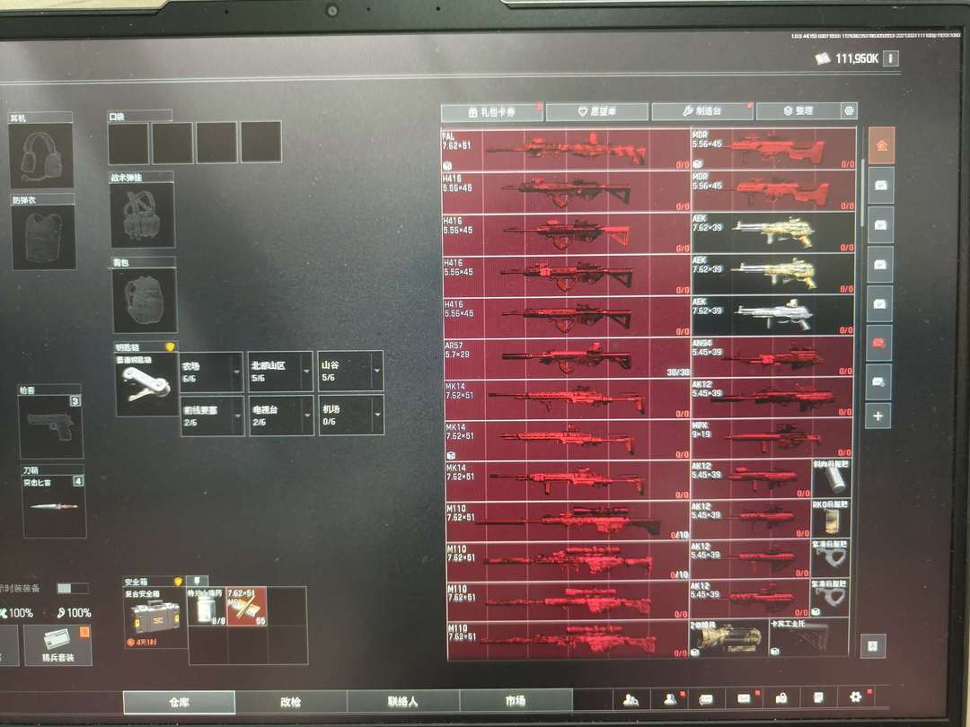 仓库价值184M,一个亿多现金,好几个6头和一堆满改枪,有好多高级药自选礼盒