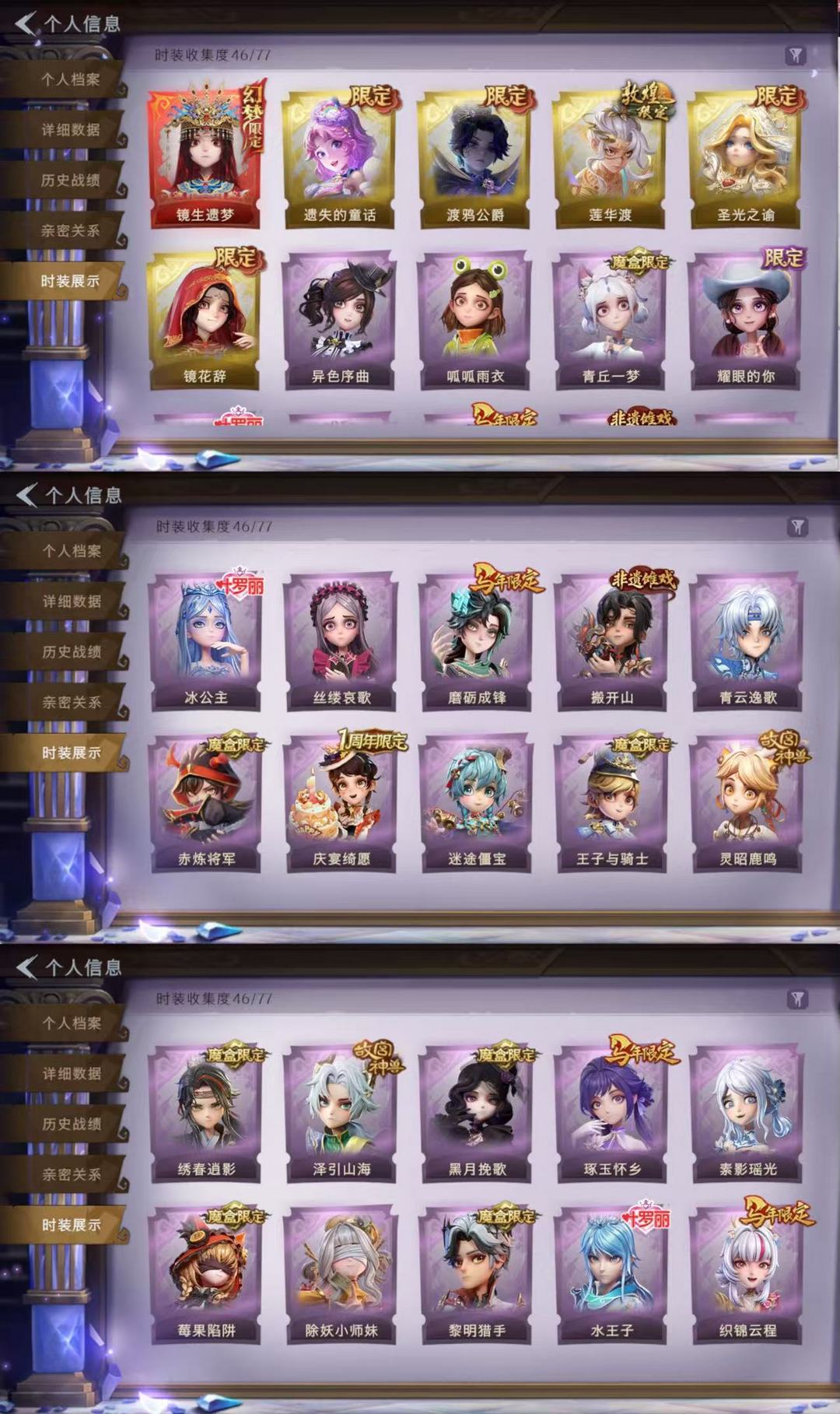 装备描述:【累充】66720金砖 【幻梦皮肤1】镜生遗梦 【金色皮肤5】莲华渡、圣光之谕、血色中的玛丽、遗失的童话、镜花辞 【紫色皮肤26】搬开山、仙锋小姐、甜梦派对、绒绒对决、莓果陷阱、异色序曲、迷途僵宝、除妖小师妹、赤炼将军、黑月挽歌、青丘一梦、王子与骑士、情公主、水王子、冰公主、罗丽、白光莹、泽引山海、灵昭鹿鸣、瑞羽衔春、霓裳踏雪、青云逸歌、素影瑶光、丝缕哀歌、绣春逍影、呱呱雨衣 【道具皮肤】晶澜灵翼、青瓷、紫霄、珍珠芭乐莓莓、昆仑镜、圣心之泪、青玉抱丹、凤鸣九天、绯红柴郡猫、鸣沙鼓、蔷薇物语、云端梦想计划、赤色之刃、小鲨匕首、祝祷词、最后的独角兽、弦外之音、龙鳞、宝剑八、永眠曲、飞花令、心跳眼镜、赞萌露比水枪、星光的裁决、碧络琅环、伏妖塔、幻宠之门、甜蜜泡泡枪、紫气东来、焰骨、小狗蛇点点鞭、金丝眼镜、乘风溯雪、卡皮巴拉小黄豚铲、赞萌波板糖、惊魂娃娃、月下莲台、花落精绝、happy猫、飞天绫、新星时代、蜜蜂线索、兜风日程、寻凉记、班卓琴、晚安仪式、潮汐小海兔、梵音莲华、兔先生的时钟、云梦之星、天使的呼唤、蝶恋花、毛球夹子、在逃小新娘、鼠鼠小跟班 【美妆】暗夜小恶魔【载具】惊奇万圣涂装