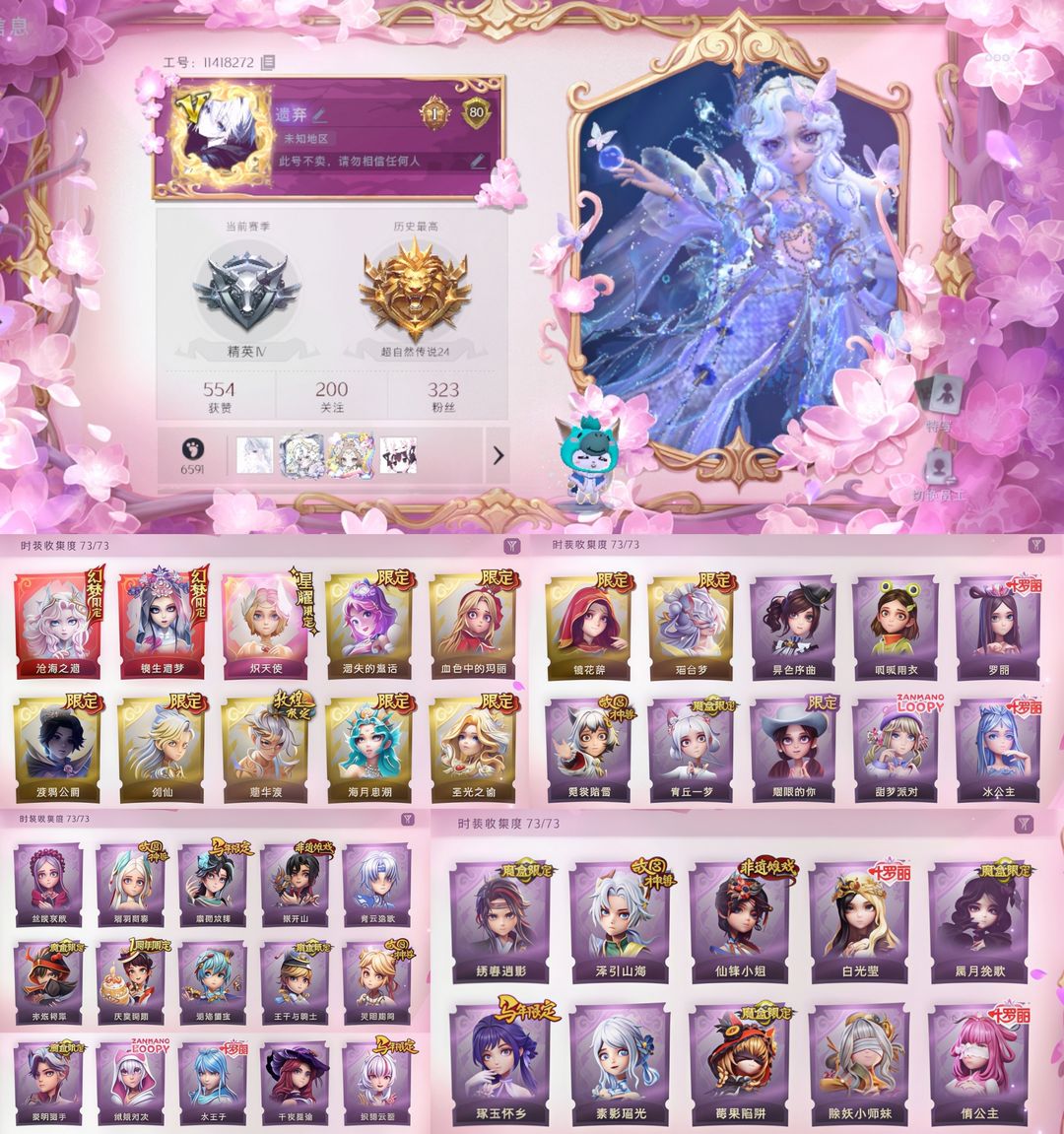 装备描述:已设置二级密码,无法出售金色回收物(金色以下可以卖),定期会往号上补充铲铲币 安卓ios均可登录,恶意撤单、滥用金砖、改id、恶意发言等不文明行为永久拉黑 一单一密保证中途不会挤号,祝游戏愉快~ 禁止使用外挂、恶意发言、用号行骗,若因此类行为导致禁言、封号的,平台提取租客实名地址,必定会立案追责,并根据账号价值全额赔偿。 账号情况: 全套炽天使 镜生遗梦池子抽满 6金皮:血色中的玛丽/遗失的童话/圣光之谕/莲华渡/镜花辞/渡鸦公爵 s1-s6魔盒:青丘一梦 赤炼将军 黑月挽歌 王子与骑士 绣春逍影 莓果陷阱 故宫(瑞羽衔春 泽引山海 霓裳踏雪 灵昭鹿鸣)青花瓷(素影瑶光 青云逸歌) 叶罗丽(情公主 冰公主 白光莹 罗丽 水王子)捉妖奇妙夜(迷途僵宝 除妖小师妹) 露比联动时装:绒绒对决 甜梦派对 非遗摊戏:搬开山 先锋小姐 异色序曲/呱呱雨衣/丝缕哀歌