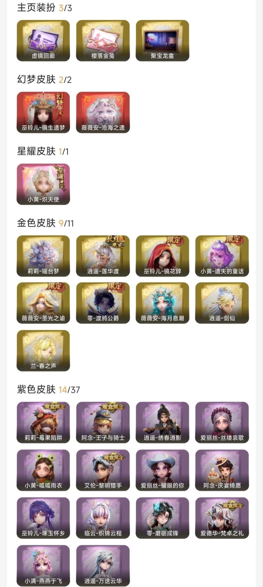 2红1粉9金14紫 兔宝 星耀炽天使 幻梦沧海之遗 镜生遗梦 耀世春之声 瑶台梦 剑仙 圣光之谕