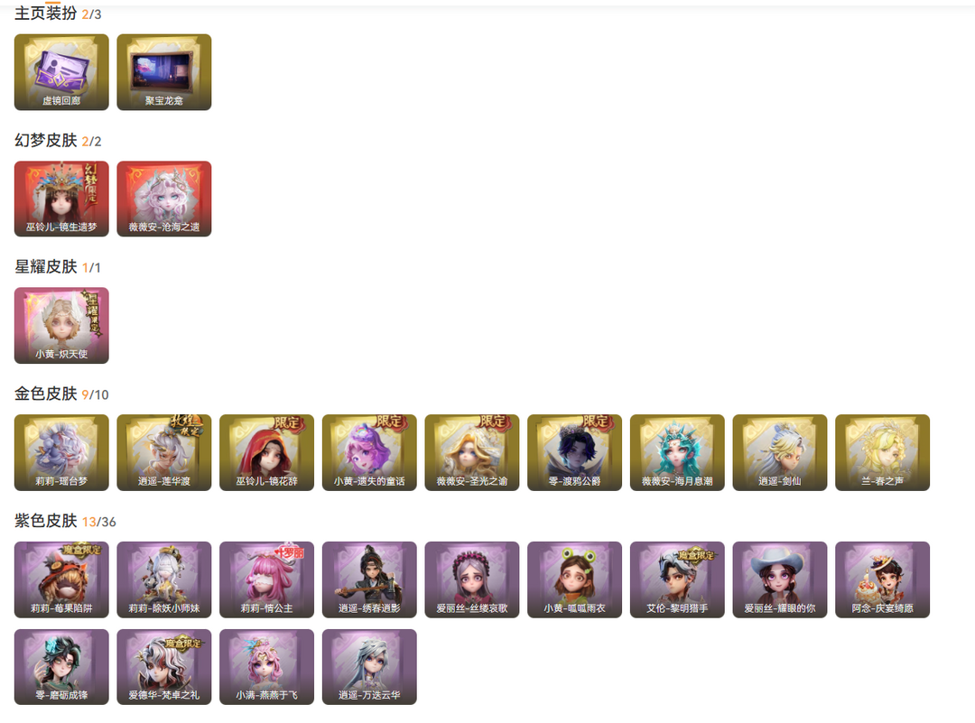 2红1星耀9金16紫镜生遗梦沧海之遗炽天使/渡鸦公爵莲华渡剑仙镜花辞/瑶台梦圣光之谕春之声遗失的童话