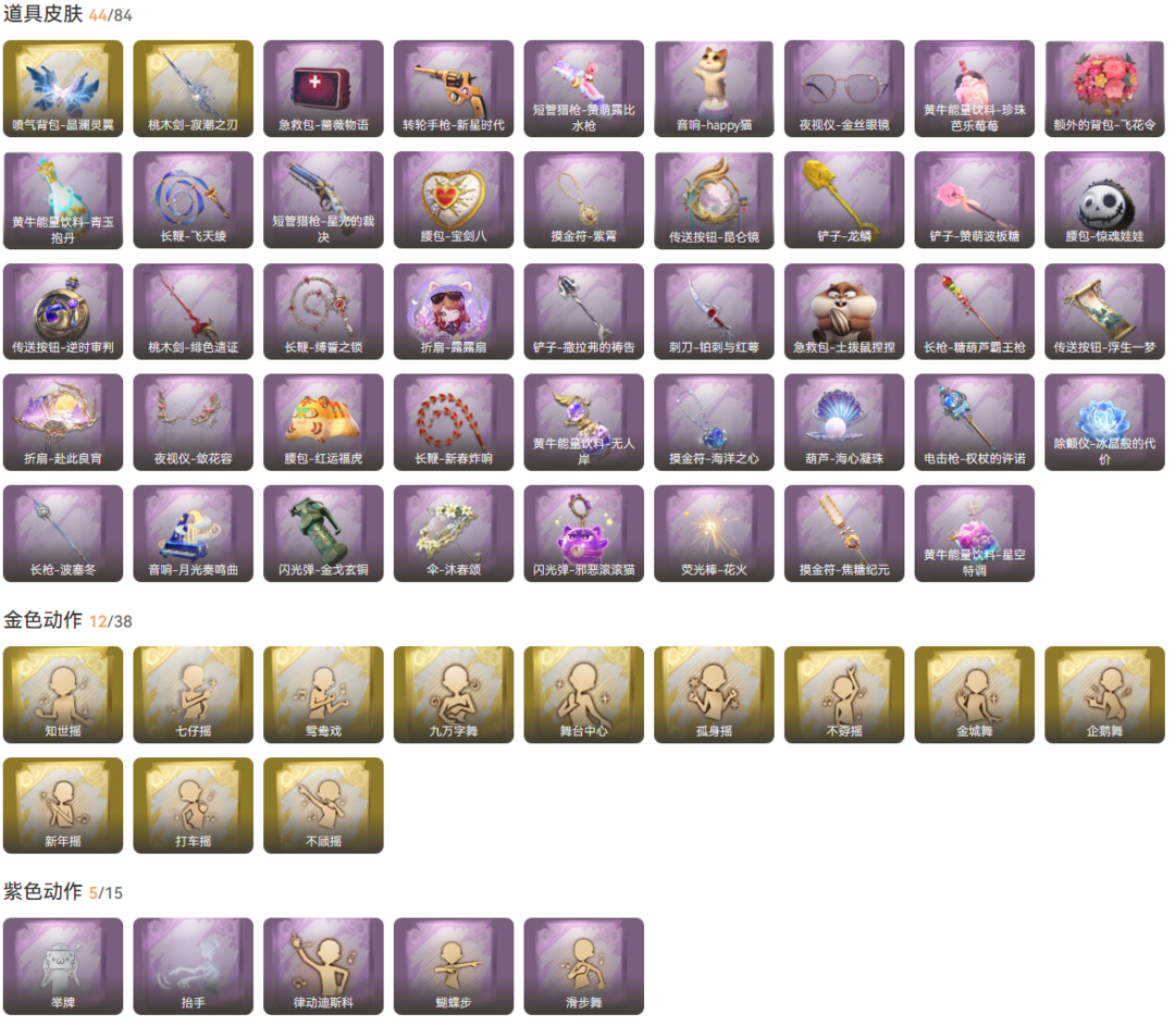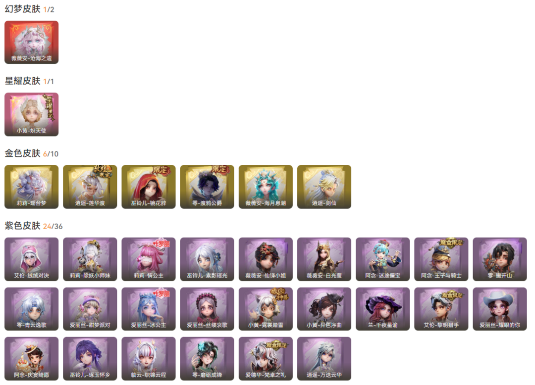 装备描述:1幻梦1星耀6耀世 1红1粉6金24紫2车 保底1红5金 晶澜灵翼 沧海之遗 炽天使 惊奇万圣涂装载具 绮想花园涂装载具 镜花辞、逍遥-莲华渡、零-渡鸦公爵、莉莉-瑶台梦、逍遥-剑仙、薇薇安-海月息潮 小黄-异色序曲、小黄-霓裳踏雪、爱丽丝-丝缕哀歌、爱丽丝-冰公主、零-青云逸歌、阿念-王子与骑士、阿念-迷途僵宝、薇薇安-白光莹、巫铃儿-素影瑶光、莉莉-情公主、莉莉-除妖小师妹、艾伦-绒绒对决、爱丽丝-甜梦派对、薇薇安-仙锋小姐、零-搬开山、兰-千夜星谕、艾伦-黎明猎手、阿念-庆宴绮愿、爱丽丝-耀眼的你、零-磨砺成锋、临云-织锦云程、巫铃儿-琢玉怀乡、爱德华-梵卓之礼、逍遥-万迭云华 腰包-惊魂娃娃、铲子-赞萌波板糖、铲子-龙鳞、传送按钮-昆仑镜、摸金符-紫霄、腰包-宝剑八、短管猎枪-星光的裁决、长鞭-飞天绫、黄牛能量饮料-青玉抱丹、额外的背包-飞花令、黄牛能量饮料-珍珠芭乐莓莓、夜视仪-金丝眼镜、音响-happy猫、喷气背包-晶澜灵翼、转轮手枪-新星时代、急救包-蔷薇物语、短管猎枪-赞萌露比水枪、桃木剑-绯色遗证、传送按钮-逆时审判、长鞭-缚誓之锁、折扇-露露扇、急救包-土拨鼠捏捏、