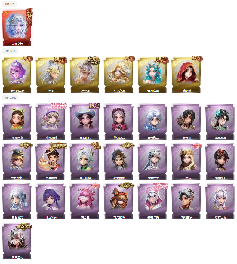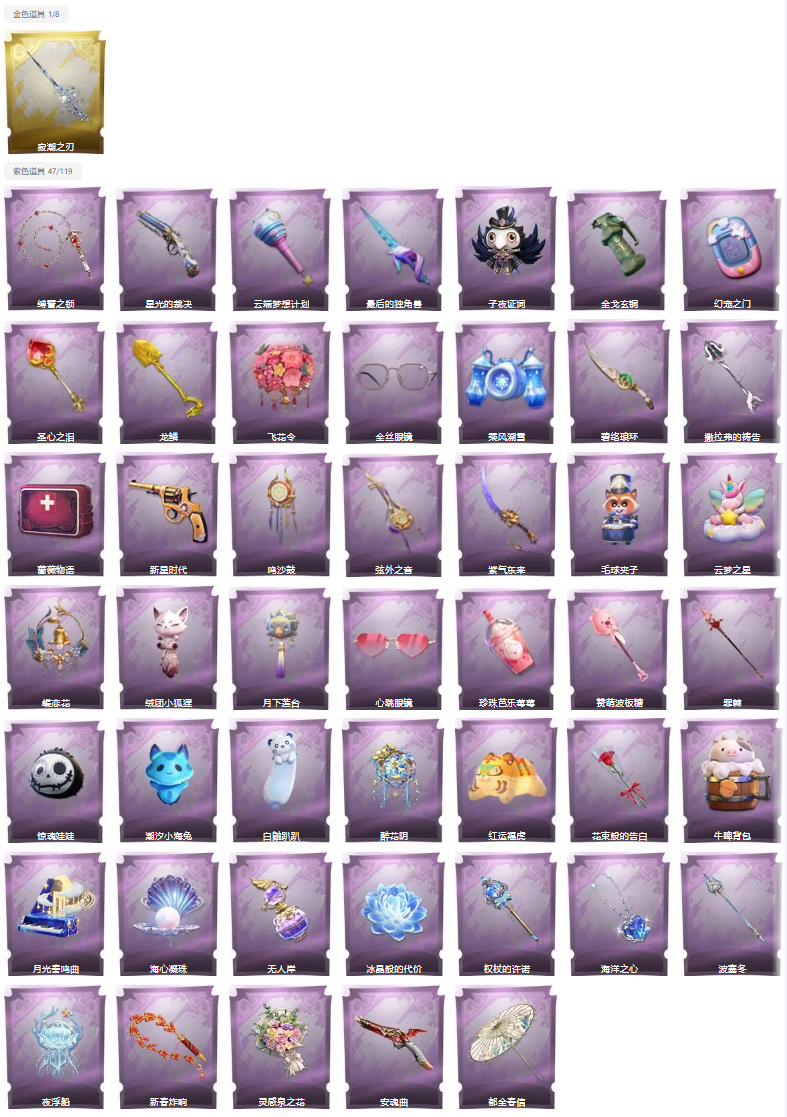 ✨满图鉴✨1红6金22紫✨非遗皮沧海之遗✨剑仙✨莲华渡✨海月息✨圣光✨泽引山海✨绣春逍影✨