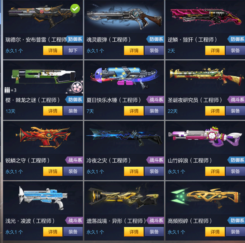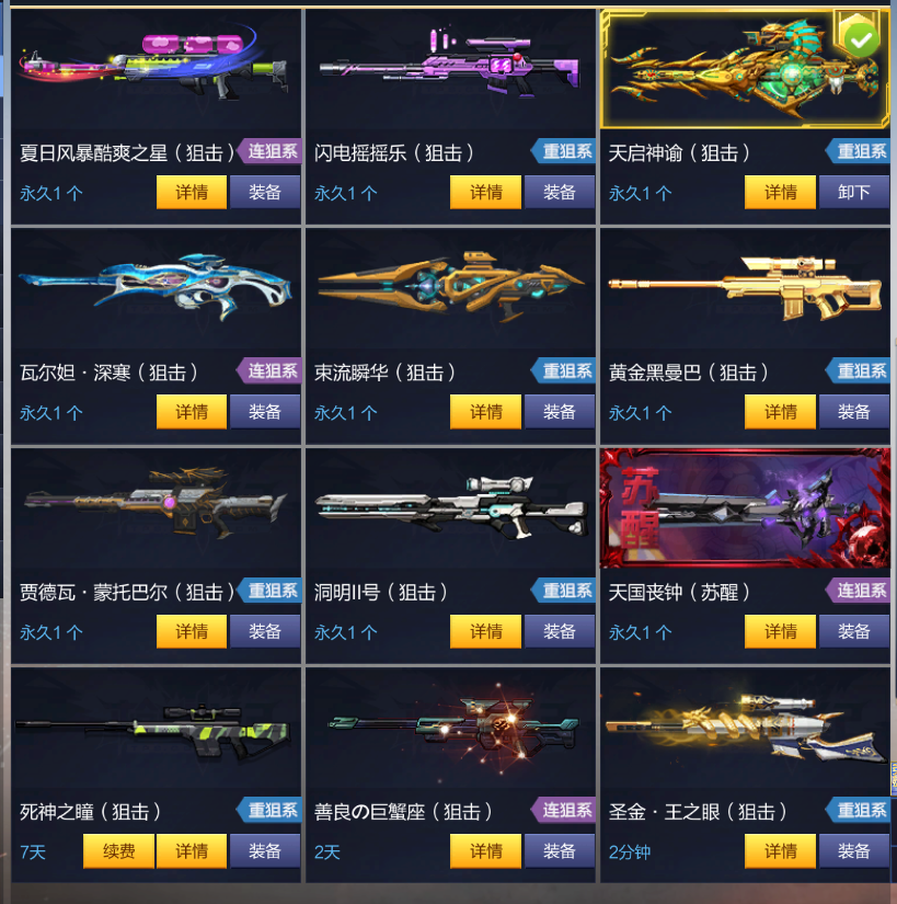 双子圣痕紫炮粒子冰雨导柜+天命狙圣痕狙新奶妈工程武器暗影刀+百页全职号