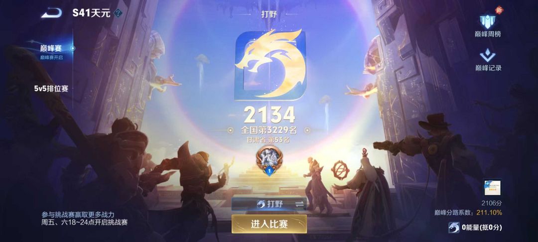 不能打巅峰赛⚡打野巅峰万强2134闪电框小魔方⚡主页全国标83段对抗路⚡在榜省3李白马超禁巅峰
