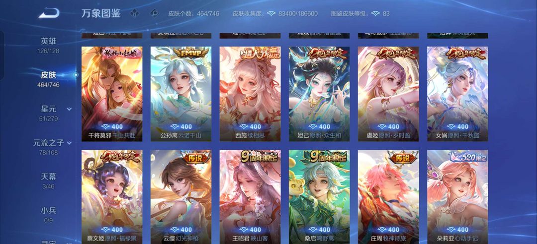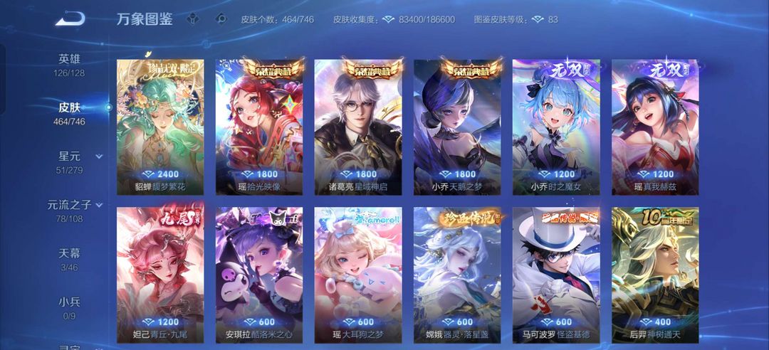 女号荣耀♥禁排♥馥梦繁花♥怪盗基德♥软肤全♥安琪拉全皮大小乔全皮♥狐妖小红娘♥天幕