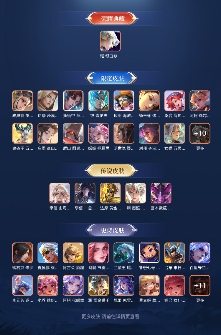 司马懿相柳皮肤,澜的年限皮肤,阿古朵全皮,铠的荣耀典藏,大司命全皮,孙悟空至尊宝