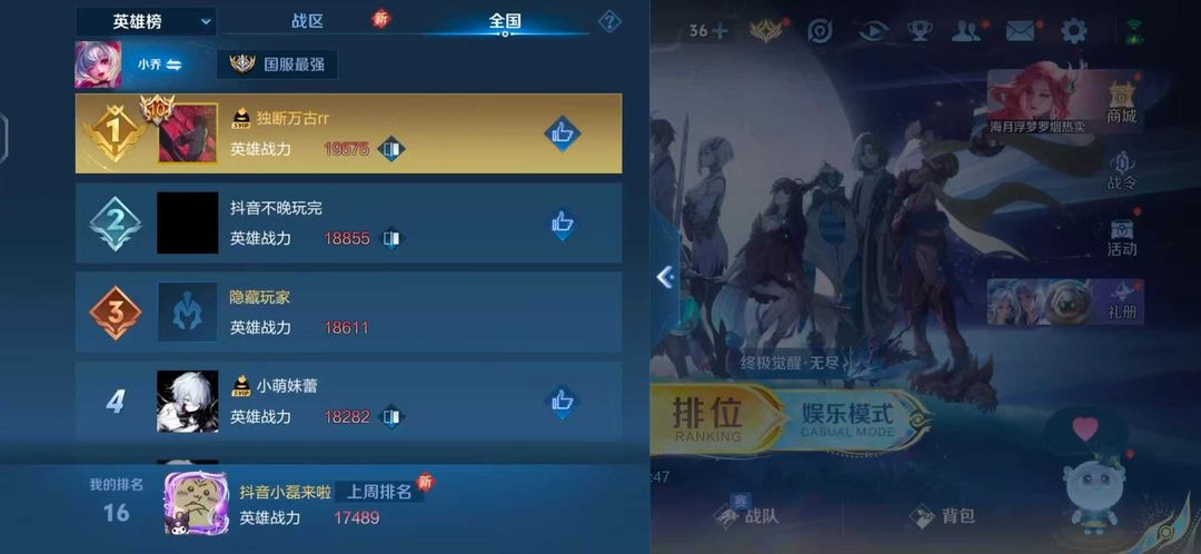 巅峰百强110名框⭐12月正式服在榜国11女娲小乔⭐在榜6省标⭐123段中路11国服⭐可排位禁巅峰