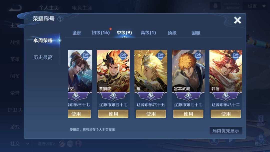 打野巅峰万强闪电框❤螭龙剑黑崎一护❤60段打野在榜省7刘备9市曜镜孙悟空澜玄策❤️禁巅峰