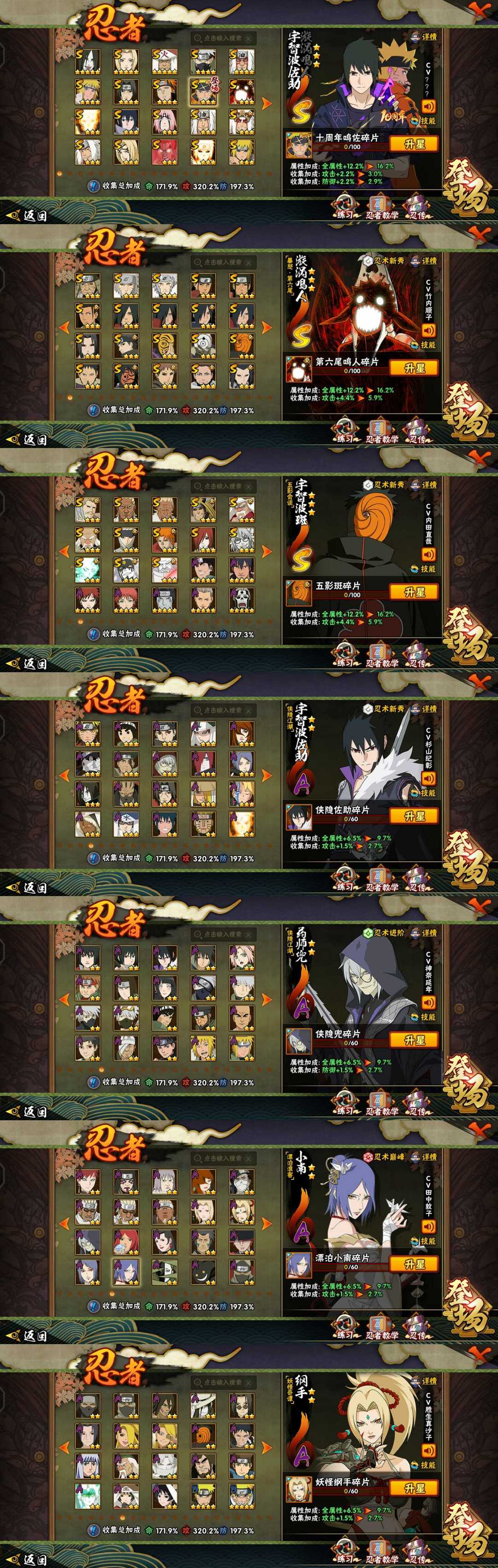 妖怪纲手♒侠隐佐助♑五影会谈斑♎暴怒六尾♎漂泊带土♍夏日黑土♌须佐止水♏大筒木舍人♓天道超
