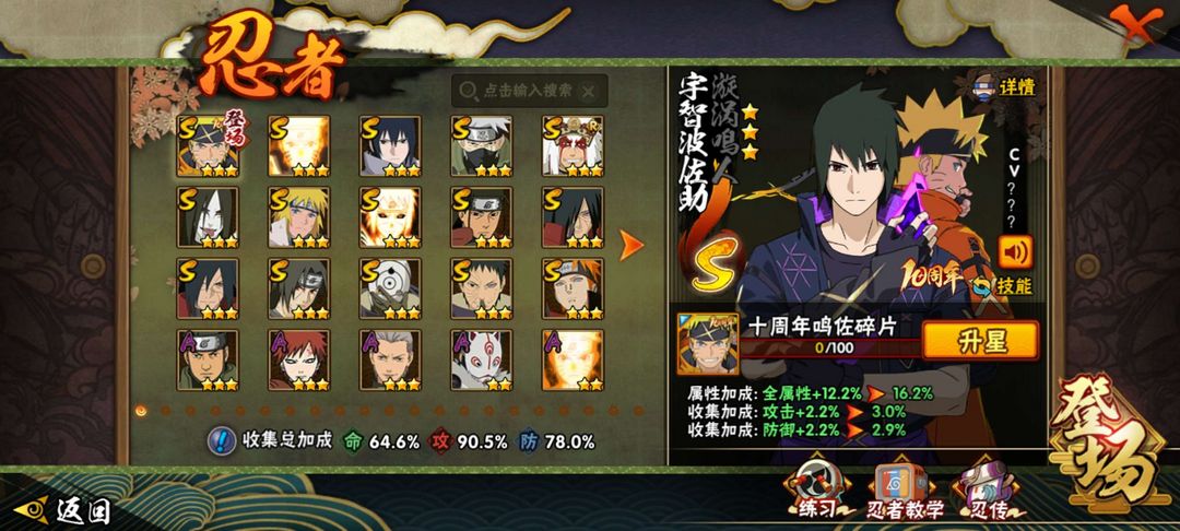 装备描述:鸣佐10周年、九喇嘛水门、面麻、须佐卡卡西、破带、千手柱间、青春凯、秽土斑、须佐鼬、黄猿、紫狗、川自、大蛇丸、水门、秽土解斑、金鸣、鹰佐、骨架、百豪樱、宇智波泉奈、神卡、青水、牢大、晓蛇、秽土小迪、普通人、忍战李、忍战宁次、真容卡卡西、秽土再不斩