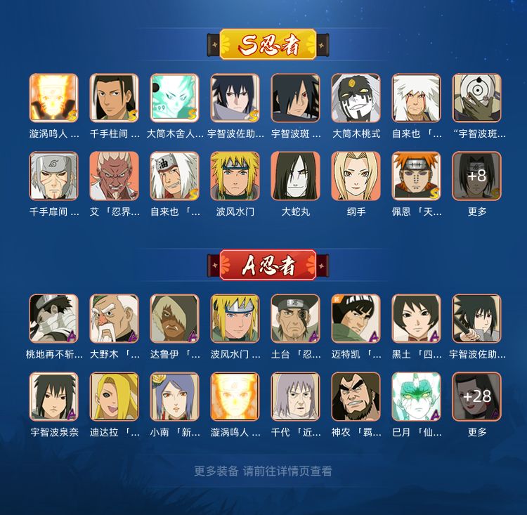 装备描述:23s✨30a✨186忍✨白面具✨创立斑✨舍人✨桃氏✨死二✨新水✨新南