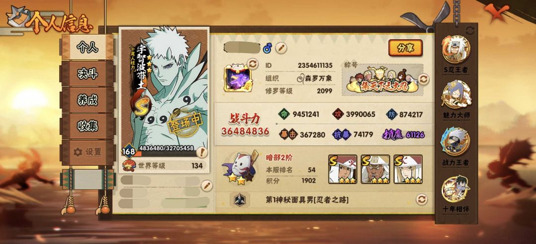 56S⭐3648W⭐十尾带土⭐五影斑⭐六尾鸣人⭐须佐卡卡西⭐金身水门⭐传说自来也⭐漂泊带土⭐天道超