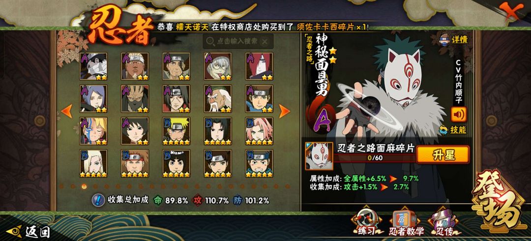19S,33A,忍者之路面具男已出、连结水门、卡卡西须佐能乎、忍界大战艾已秒,其他的帐号看图,