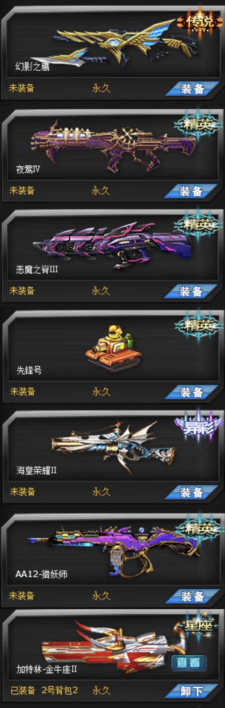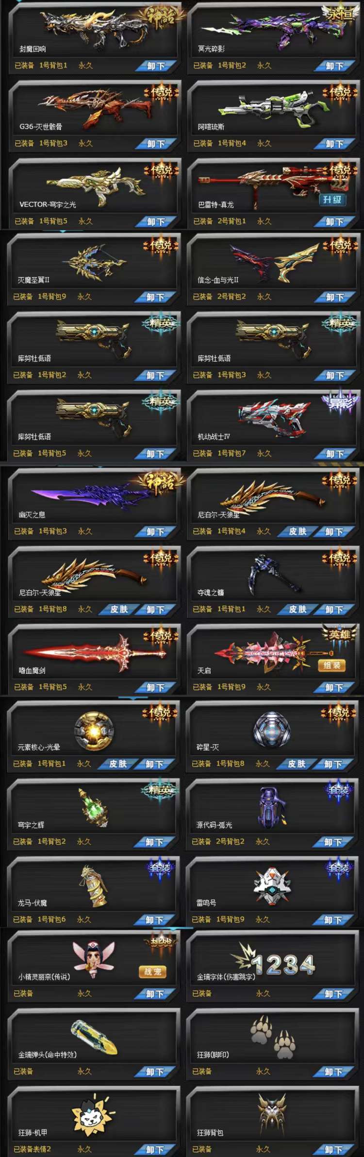 满级镭龙✨封魔幽灭✨灭世骸骨✨冥光碎影✨阿喀琉斯✨幻影之鹰✨穹宇之光✨幻术年兽✨恶魔夜莺✨无敌套天启