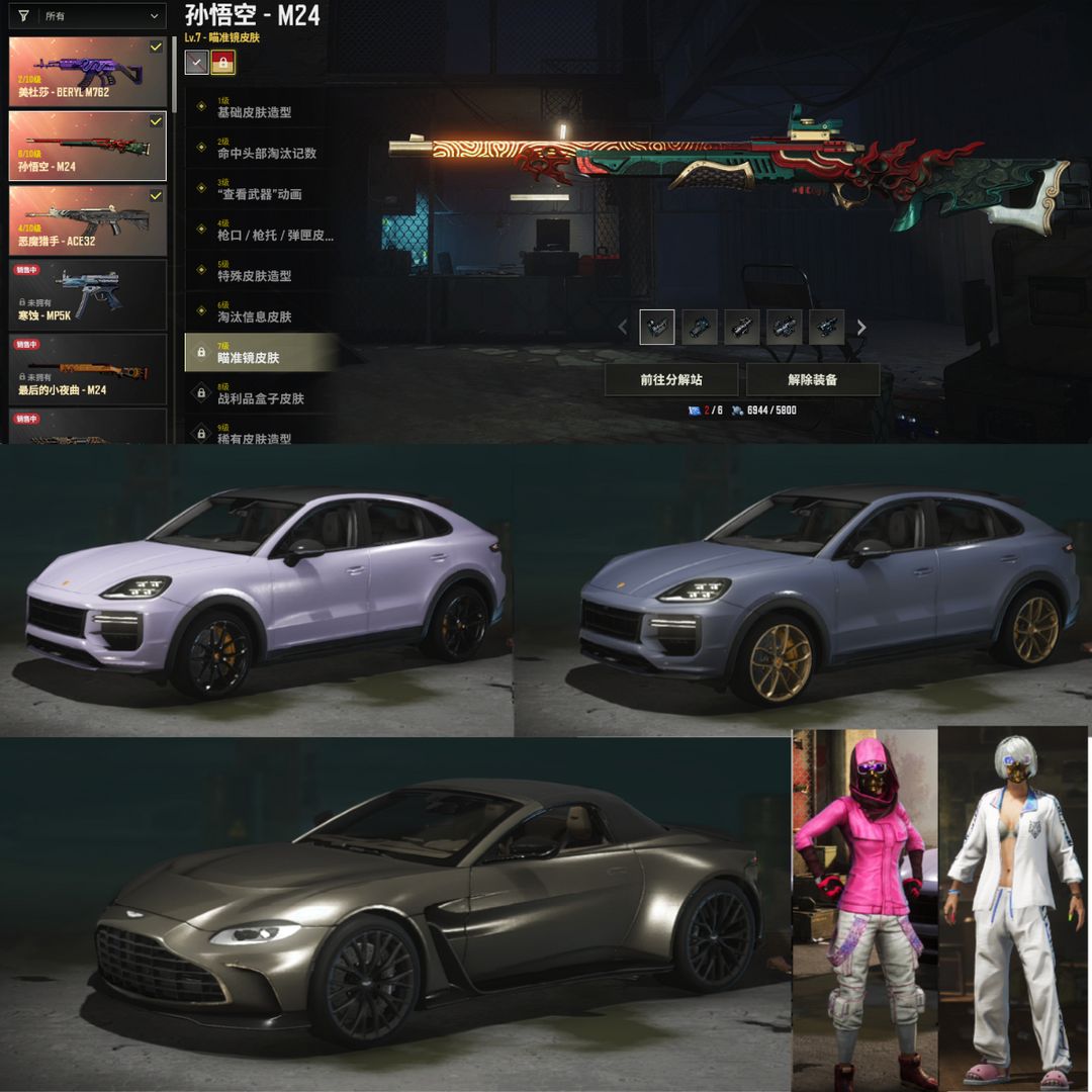 保时捷卡宴+阿斯顿马丁跑车禁排⑥孙悟空M24④恶魔ACE②级美杜莎M762⚛️滑雪镜金面烟枪尼尔头吴