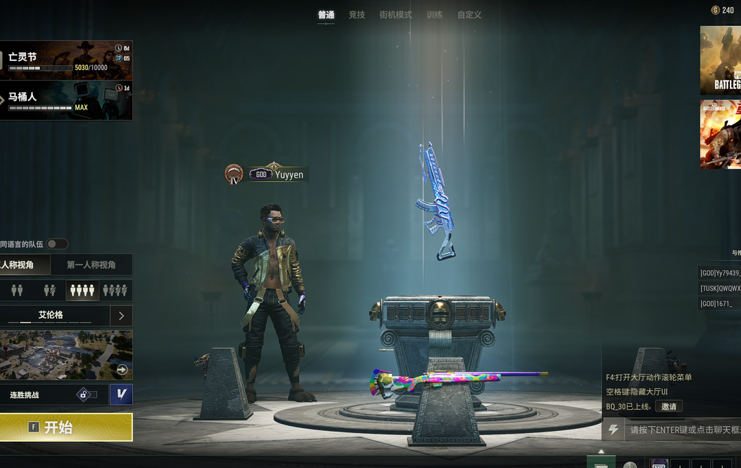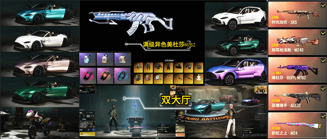 斗鱼夹克✨满马丁✨丹尼尔✨小丑女✨满级异色美杜莎✨五级恶魔ACE✨四级彩虹M24✨时光SKS✨柏洛斯