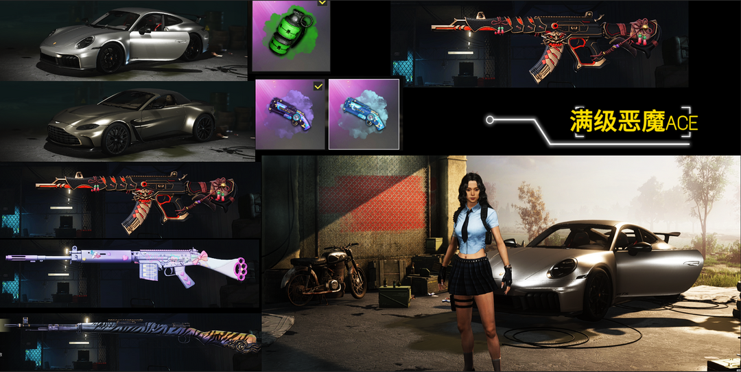 保时捷911跑车/马丁跑车/3级瀚娜/拉风龙/满级妖魔之触ACE32/2级猛虎猎手98K/危险玩偶屋