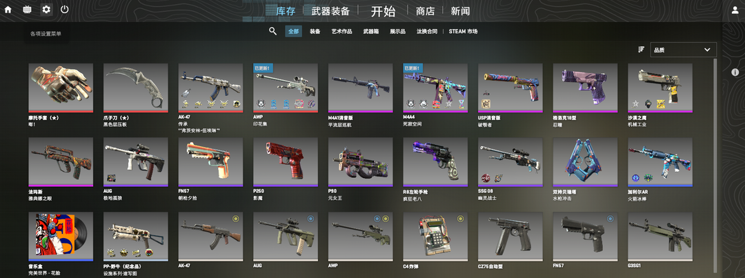 可5E完美新手❤️黑压板爪子刀❤️嘭摩托手套❤️青花瓷AK❤️印花集狙❤️平流层A1❤️死寂M4