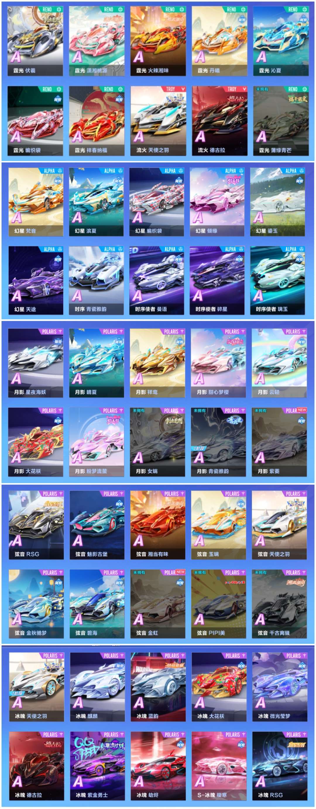 装备描述:10T( 枢米尔/云逍 挚爱舰长/魅雅 /源极 悠虞舰长/哈雷特/神威泰坦/奥莉娜/荣耀圣卫/鸭宝超人/蓝波豚宝) 8辆联赛车 (溯光/霆光/弦音/幻星/月影/冰魄/时序/流火) 2 神宠( 熊猫龙神) 181辆A车 130款皮肤 请文明上号,毁号必追究!!!