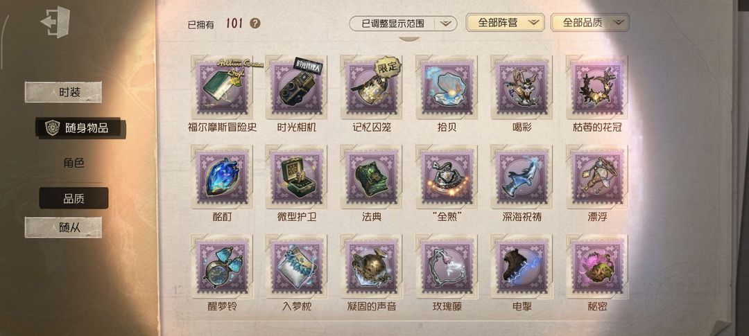 小女孩二限,祭司绯,先知黯,雨宫莲,气象限定金,心理二限,芙丽莲全收集,幻灯师一限,多回声紫